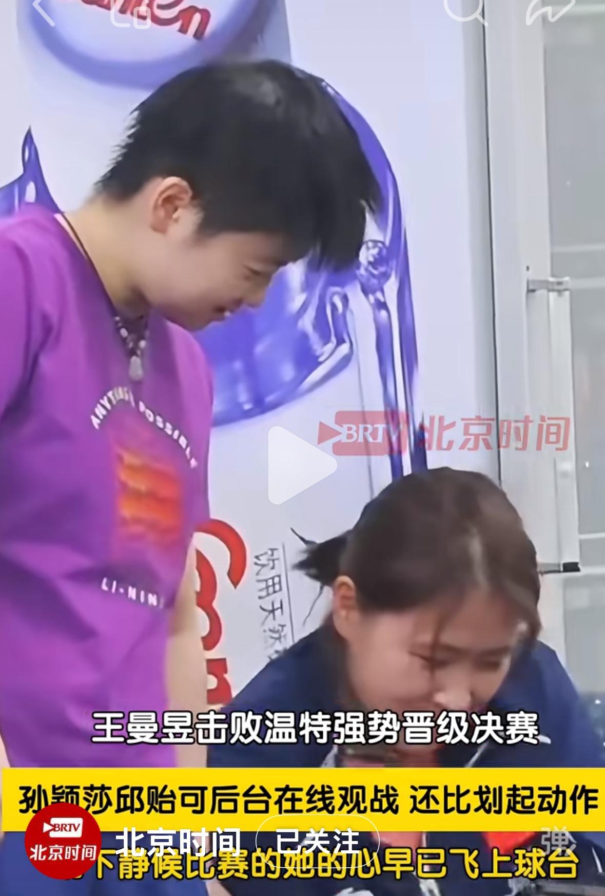 孙颖莎/邱贻可指导也在后台在线观看王曼昱VS温特的比赛—获胜时刻莎莎为曼昱鼓掌👏! 3月1日,新加坡大满贯女单半决赛, 王曼昱对阵温特先上场, 莎莎在后台在线观看, 关键分,莎莎还比划起了动作, 等待比赛的莎莎, 心已经飞到了赛场, 王曼昱打出精彩球, 和获胜时刻, 莎莎激动到拍手称好! 曼昱失误的时候,把莎莎急的不行, 带入感特别强, 最后莎莎对曼昱全是肯定, 最后看到曼昱热血沸腾, 帅气十足,女战士一样赢了比赛, 太开心, 莎莎看到曼昱打外协, 赢了就开心! 孙颖莎真的是大格局, 新加坡大满贯, 今晚7点,女单决赛, 孙颖莎VS王曼昱, 世界第一与第二的巅峰对决,