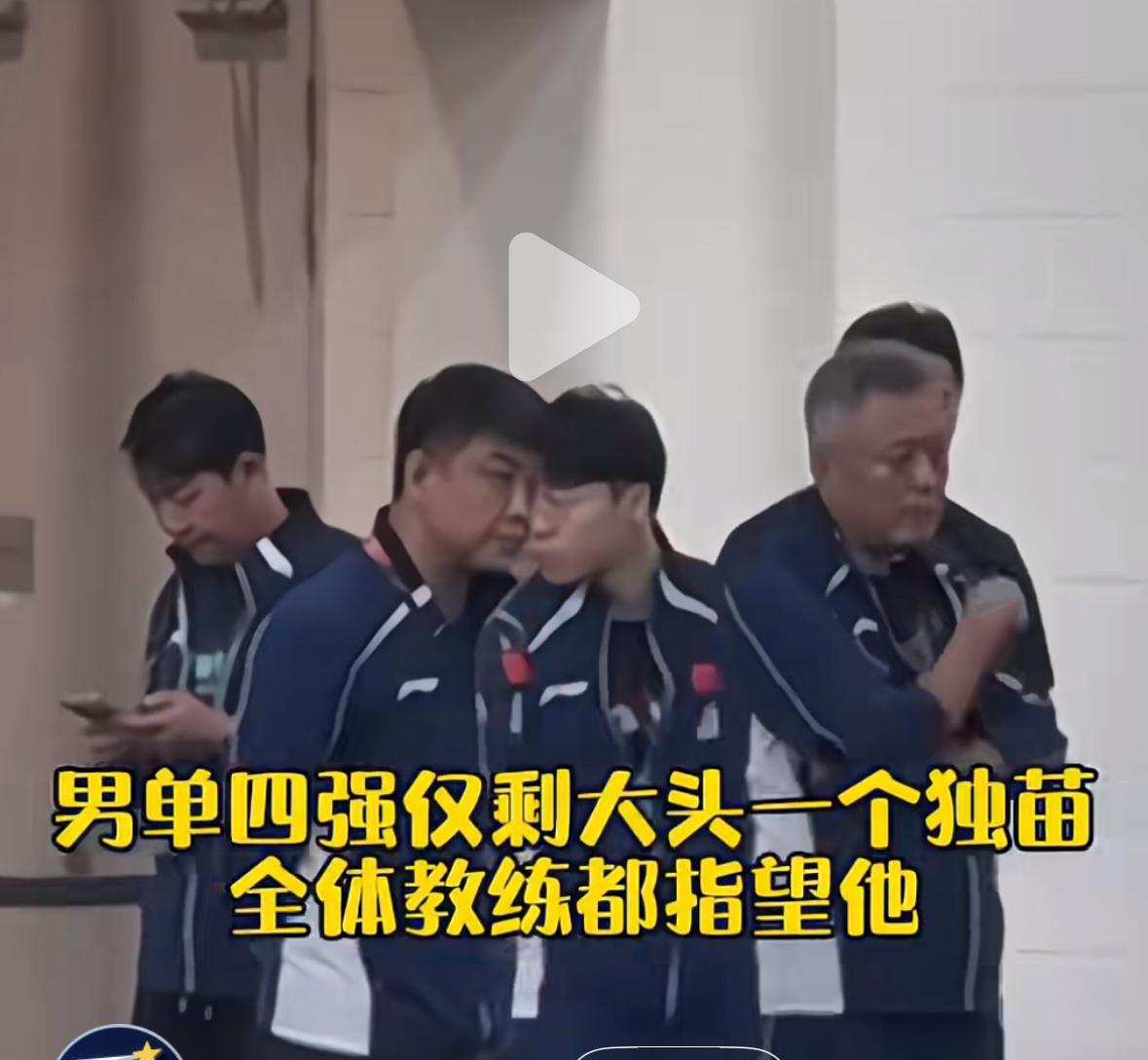 王楚钦再一次独守全区——后台训练被全体教练包围! 新加坡大满贯,王楚钦孤胆英雄 四强又被外协包围, 半决赛前的热身训练中, 王楚钦被教练组包围起来, 秦志戬,王皓,孙逊指导等 都在给王楚钦出谋划策, 以防万一, 还换着拍训练! 马琳指导的目标是早点不用上班, 王皓指导的目标是上班一定要上到最后…… 已经很多次了, 四强之后就剩王楚钦一个人, 然后全队的希望都在他身上, 压力可想而知! 男线目前的格局就是这样, 各国都很强, 很难国乒会师决赛了! 今晚8点,男单决赛, 王楚钦VS林昀儒, 加油王楚钦, 魏桥内战,不能手软啊!