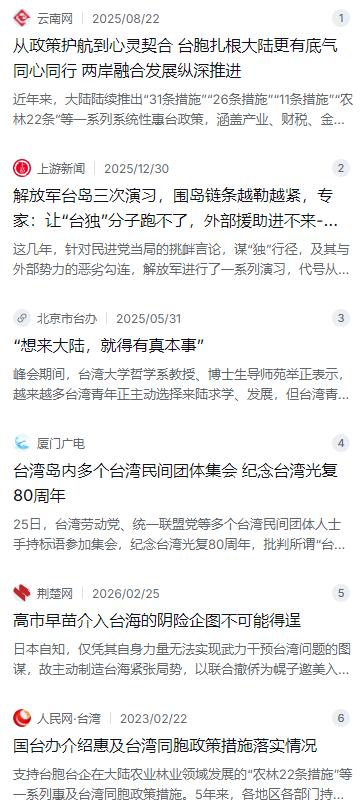 中国已经拔掉收复台湾的最后一根保险销!很多人以为,我们要么等,要么打。错了!真相是第三种方式——主动和平回归,正以摧枯拉朽之势席卷全岛。惠台政策与军事高压双管齐下,直接打穿了分裂势力的心理防线,统一早已进入读秒阶段。 麻烦看官老爷们右上角点击一下“关注”,方便您进行讨论和分享,感谢您的支持! 朋友们,今天咱们聊个透心凉的话题。很多人谈到台湾问题,脑子里就两根筋:要么是无限期地“等”,等到地老天荒;要么是吓得跳脚的“打”,打得头破血流。但我告诉你,这两样都过时了。真正的剧本是第三条路——**“逼回来”**,或者更准确地说,是让台湾同胞自己“走回来”。现在岛内那股风向变得有多快?可以说是摧枯拉朽。不是靠嘴皮子,是靠看得见的手和高悬的剑,双管齐下,直接把那根保险销给拔了。 先从软的这根“管子”说起。大陆这些年的惠台政策,早就不停留在喊口号了,那是实打实地“同等待遇”。2018年的“31条”、2020年的“26条”,再到后来的“农林22条”,这哪是什么施舍?这是敞开大门让你来抢凳子。到2024年,光是两岸人员往来就达到了440.5万人次 。这意味着什么?意味着每周都有无数台湾的年轻人、中年人,拖着行李箱跨过海峡。他们不是为了旅游,是为了“活路”。在大陆,他们考医师资格、申请“专精特新”企业、甚至当上了非遗传承人,有的台商在福建拿到了林地经营权证,直接贷款 。台湾青年想在这里出头,靠的不是优惠券,得靠真本事。这种实实在在的“好日子”诱惑,比什么宣传都管用。 当然,光有胡萝卜是不够的,另一只手必须攥成铁拳。解放军的“联合利剑”和“海峡雷霆”系列演习,那不是放鞭炮听个响,那是外科手术式的切香肠。从2024年到2025年底,演习的代号变了,战术也变了 。以前可能是绕着岛转,现在演习区直接划到了台岛东部,那里以前被某些人当成避难所,觉得解放军够不着。现在呢?“海峡雷霆-2025A”直接把封控区域锁死在要害港口和能源生命线上 。说白了,演习传递的信号只有一个:一旦动手,不仅“台独”首恶跑不掉,那些想伸手的外部势力也进不来。这种步步紧逼的压迫感,让岛内那些靠吹牛壮胆的人,晚上还睡得着吗? 再看看岛内年轻人的脑袋是怎么转过来的。以前老一辈可能还有些故土难离的悲情,现在这一代台青,务实得很。他们刷抖音、上小红书,看到的是大陆城市的霓虹灯和机遇。台湾大学教授苑举正就直言,现在找他咨询来大陆发展的学生越来越多,而且他提醒这些年轻人:“想来大陆,得有真本事。” 这句话的潜台词就是,大陆早已不是那个需要你施舍的地方,而是一个优胜劣汰、充满红利的竞技场。更关键的是,2025年台湾光复80周年的时候,岛内统派团体直接上街了,举着牌子纪念,批判那些篡改历史的课纲 。这种民间认同感的抬头,不再是少数人的呐喊,开始变成一股社会清流。 说到这,就不得不提那帮天天喊着“救台”的所谓盟友。美国和日本最近确实跳得高,又是对台军售,又是首相放狠话,说什么要“救援公民” 。但咱们得听其言观其行,而不是听其吹牛。美国那套“地狱景象”的恐吓,听起来吓人,但你翻翻历史,当年在朝鲜、在越南,美国哪次真的敢跟新中国正面硬刚?现在的中国海军、火箭军,早已织起了一张覆盖第一岛链的火力网。日本首相高市早苗最近那些挑衅话,说白了是转移国内矛盾,真要他下场,他自己法律上都不允许 。所谓的外部支援,顶多是几句声援,在绝对的地理和实力优势面前,就是纸老虎。 最有意思的是岛内政治气候的微妙变化。以前那些政客为了选票,拼命煽动仇中情绪。现在风向不对了,连一些曾经的深绿学者都开始呼吁“避战”,因为老百姓不傻。老百姓看到的是,如果“台独”继续闹,带来的不是安全,是解放军越收越紧的包围圈。国台办最近也松了口风,只要承认一个中国,什么政党、什么团体,都可以坐下来谈 。这说明什么?说明统一的主导权已经牢牢攥在大陆手里,什么时候统、怎么统,节奏由我们定。 所以,别再问“是等还是打”这种过时的问题了。真相是,我们正通过“融合发展”这把温柔的手术刀,和“军事高压”这副铁钳,对分裂势力进行精准的外科手术。统一这件事,不是将来的某一天突然发生,而是正在发生的每一天。当越来越多的台湾同胞把身份证换成台胞证,把人生规划锚定在大陆,把对战争的恐惧换成对未来的期待,那根所谓的“保险销”,早就在这股洪流中被冲得无影无踪。
