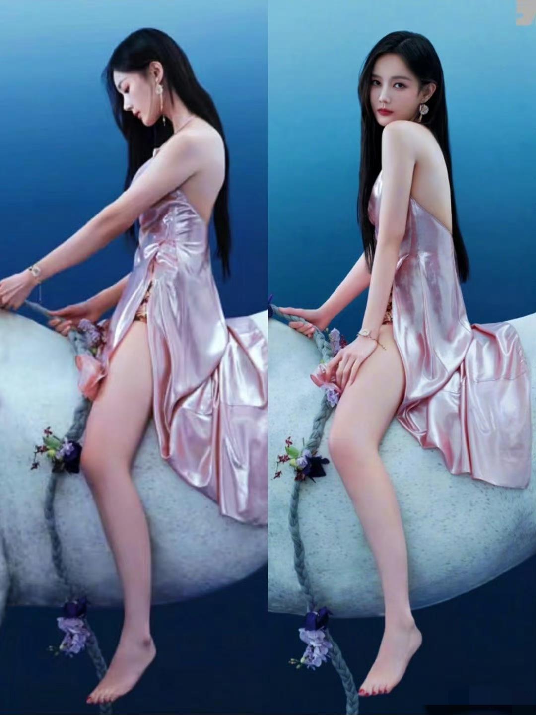 模仿世界名画的造型令人第一眼便联想到擦边,服饰风格近似情趣内衣,眼神与姿态均显怪异,充满男性凝视感(与演员本人无关)。整体设计显露出明显的男性杂志审美倾向,材质选择亦未能弥补观感上的不适。