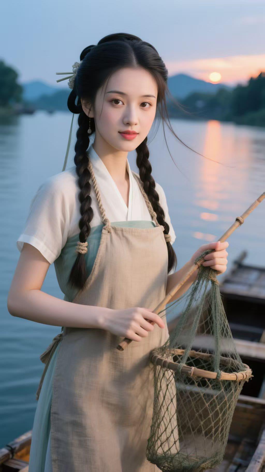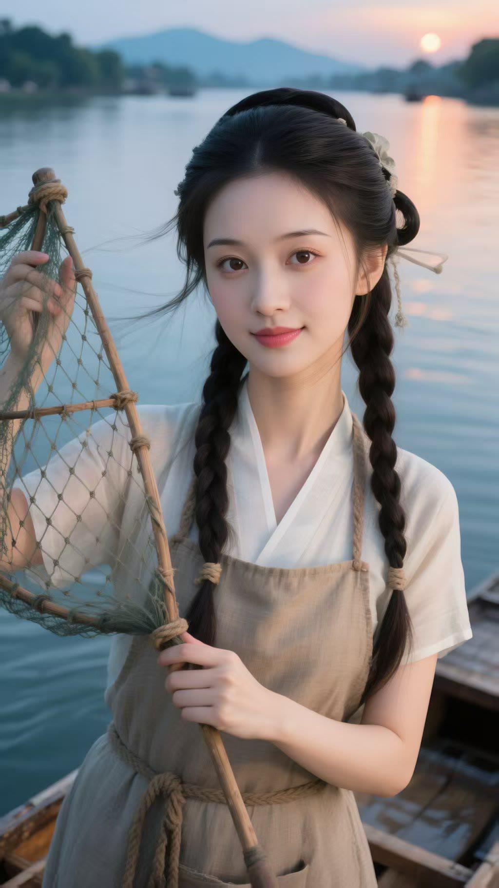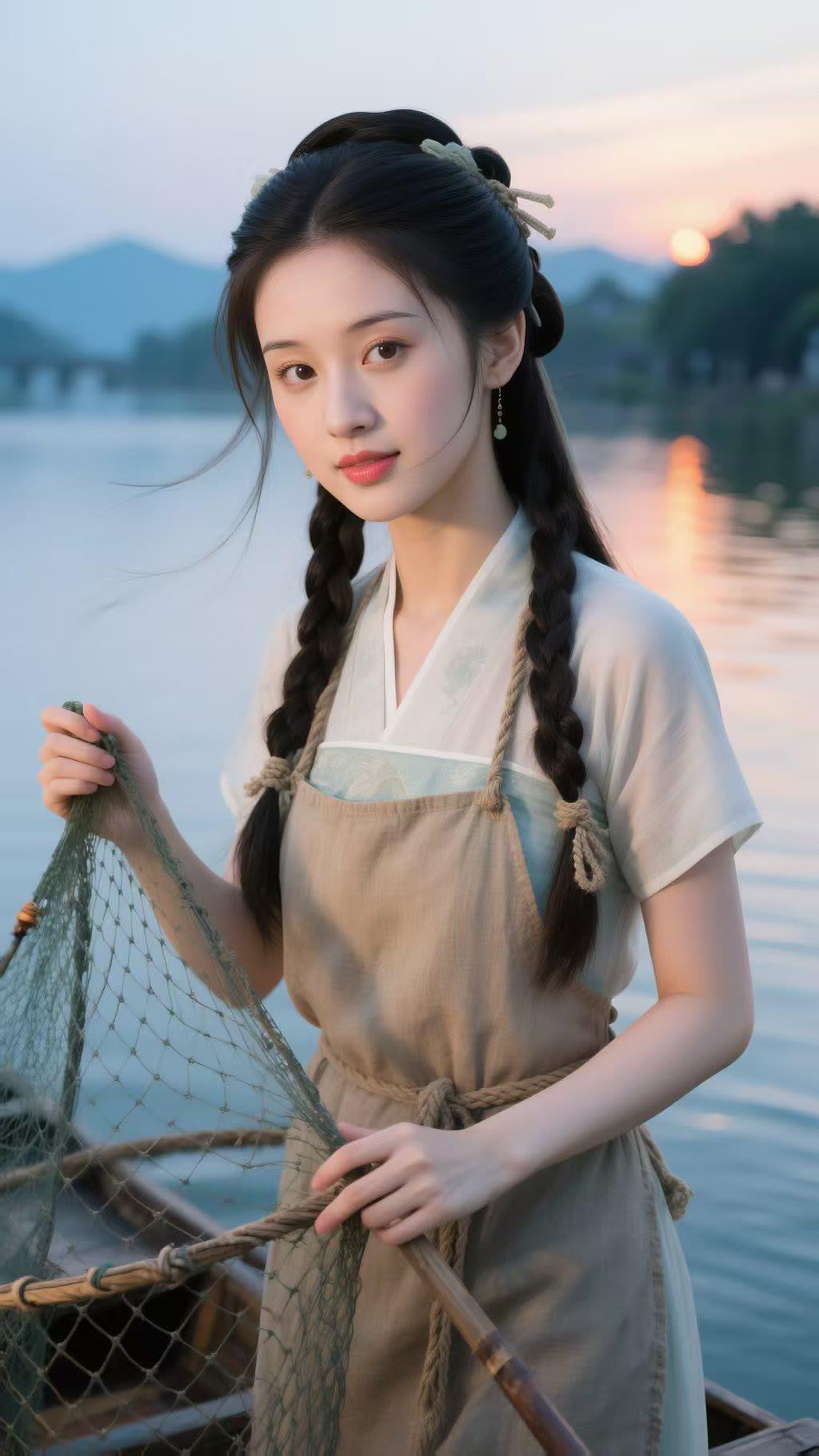 古风少女,河畔垂钓,静谧时光,唯美画面