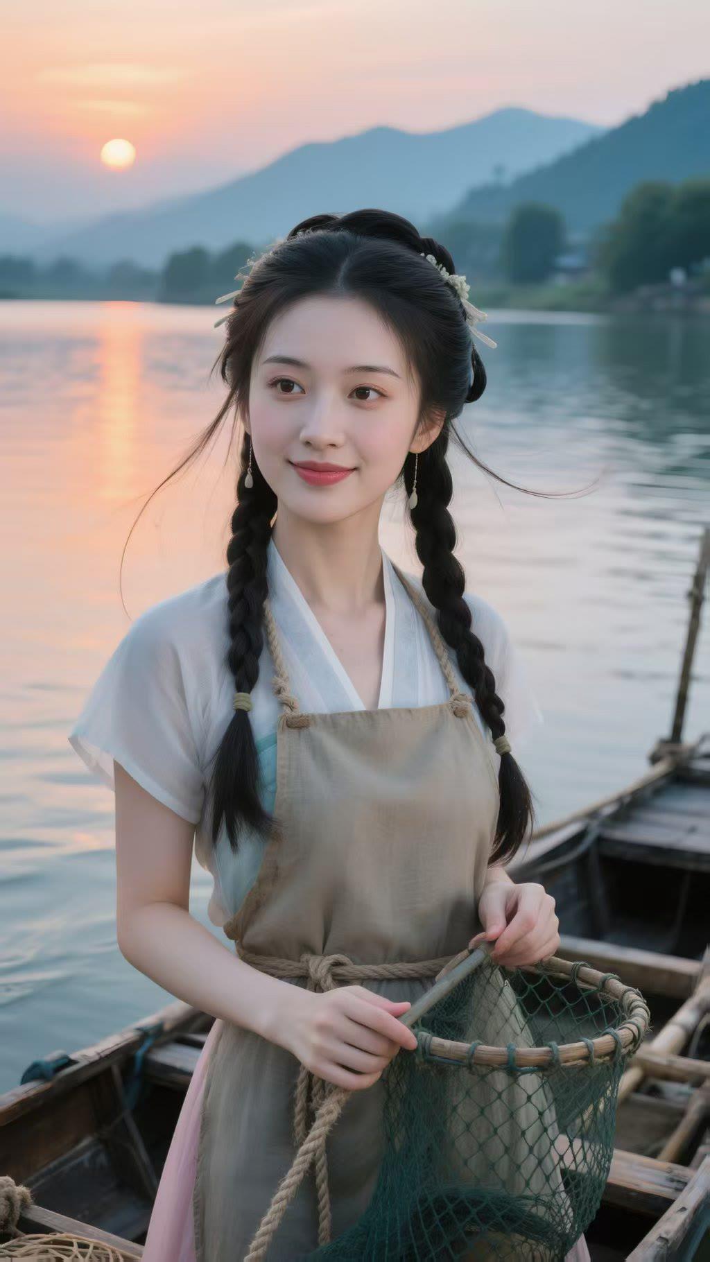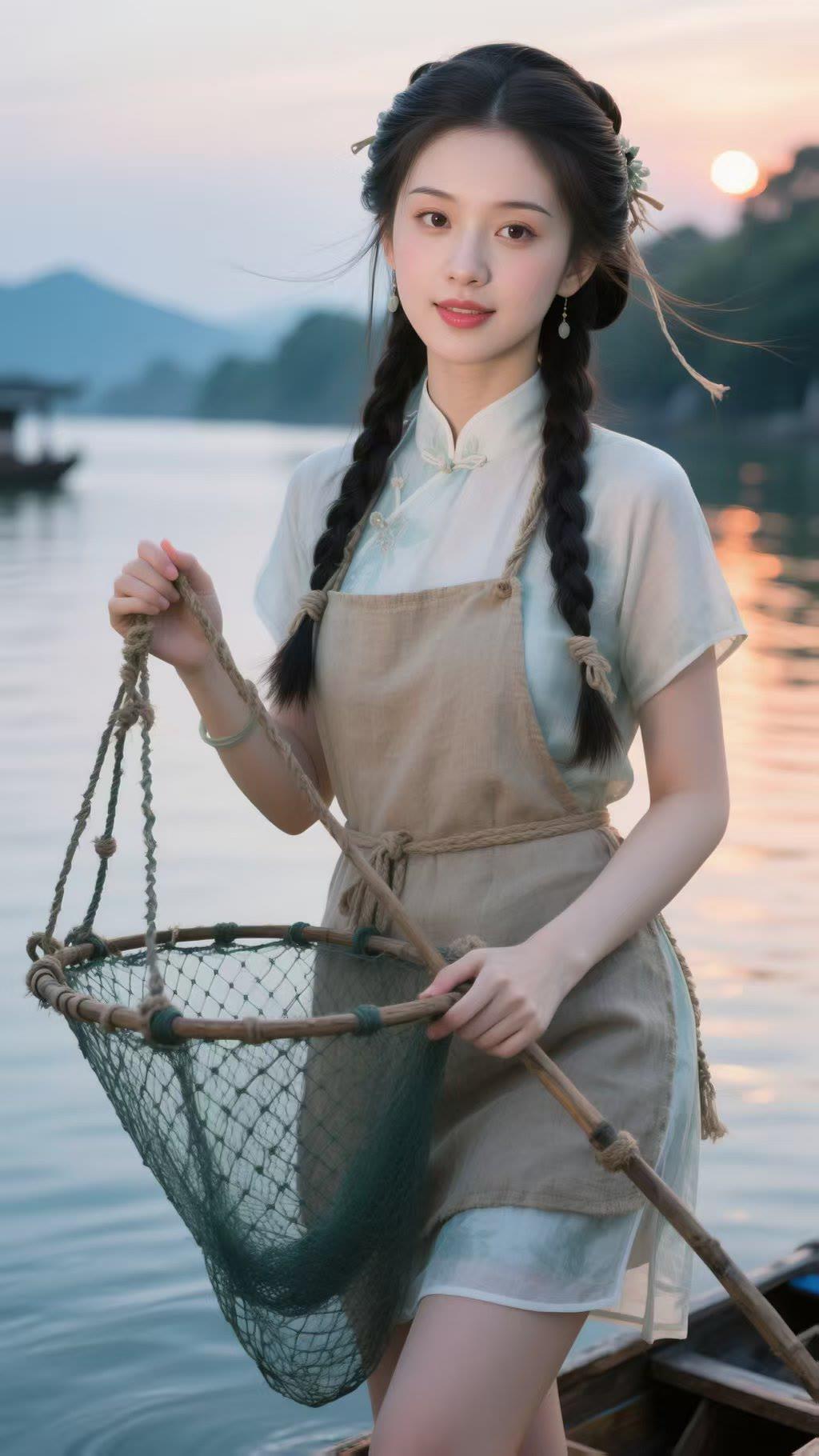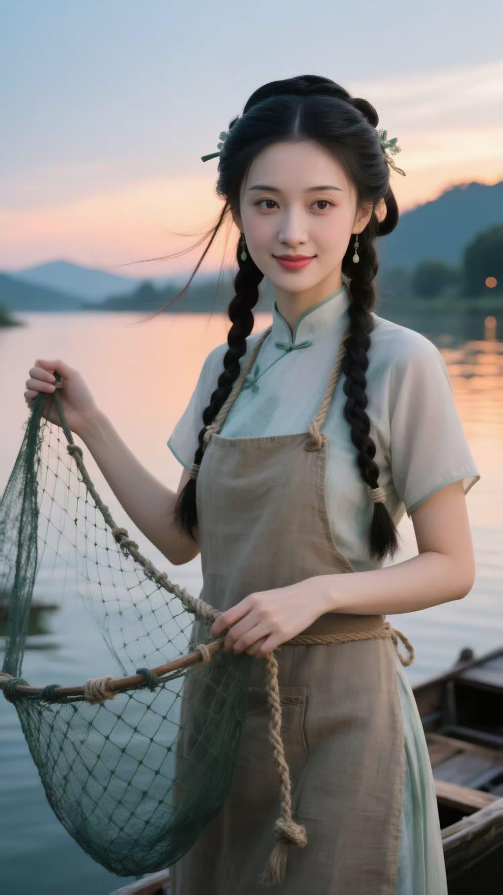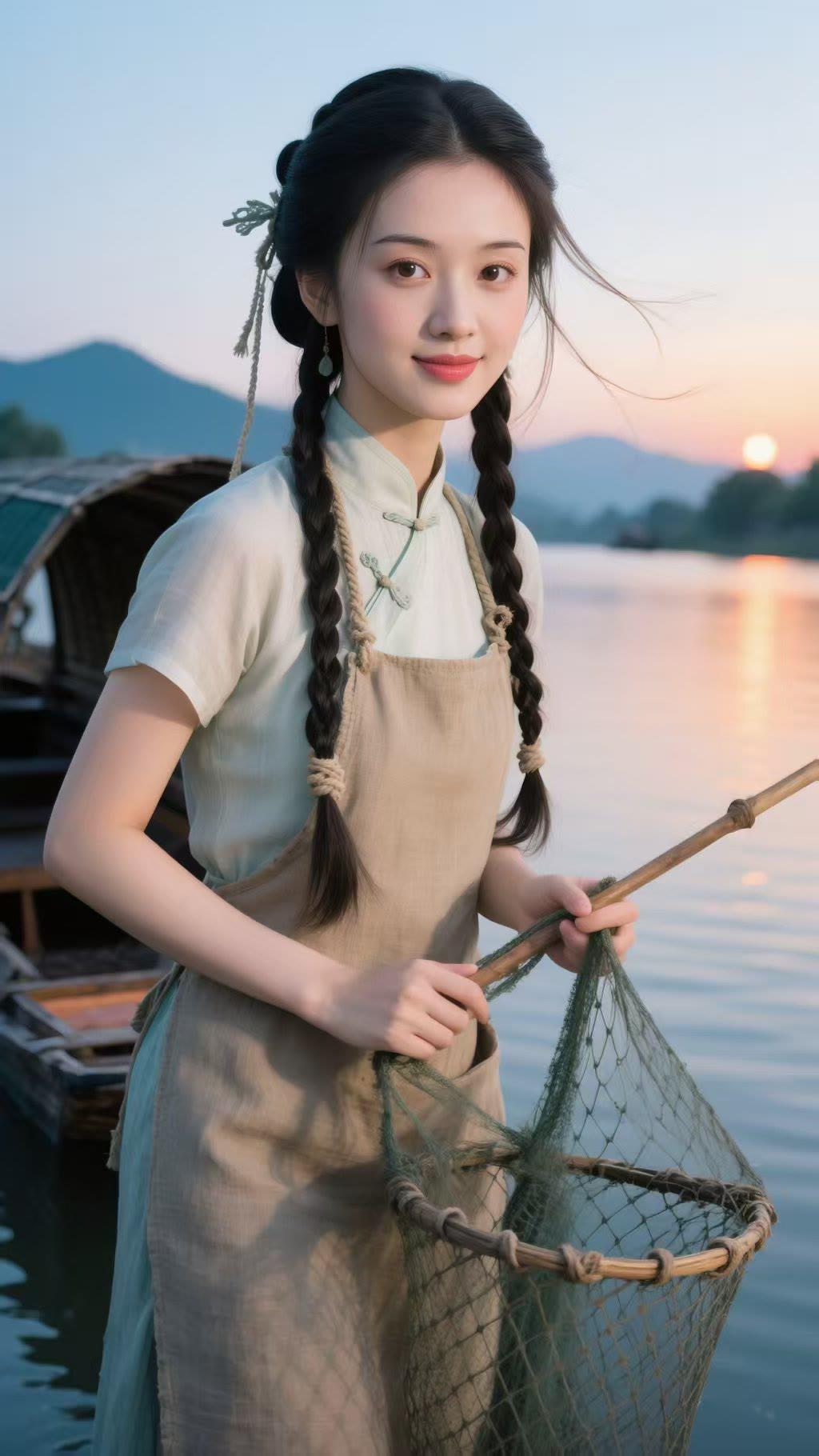 古风少女,河畔垂钓,静谧时光,唯美画面