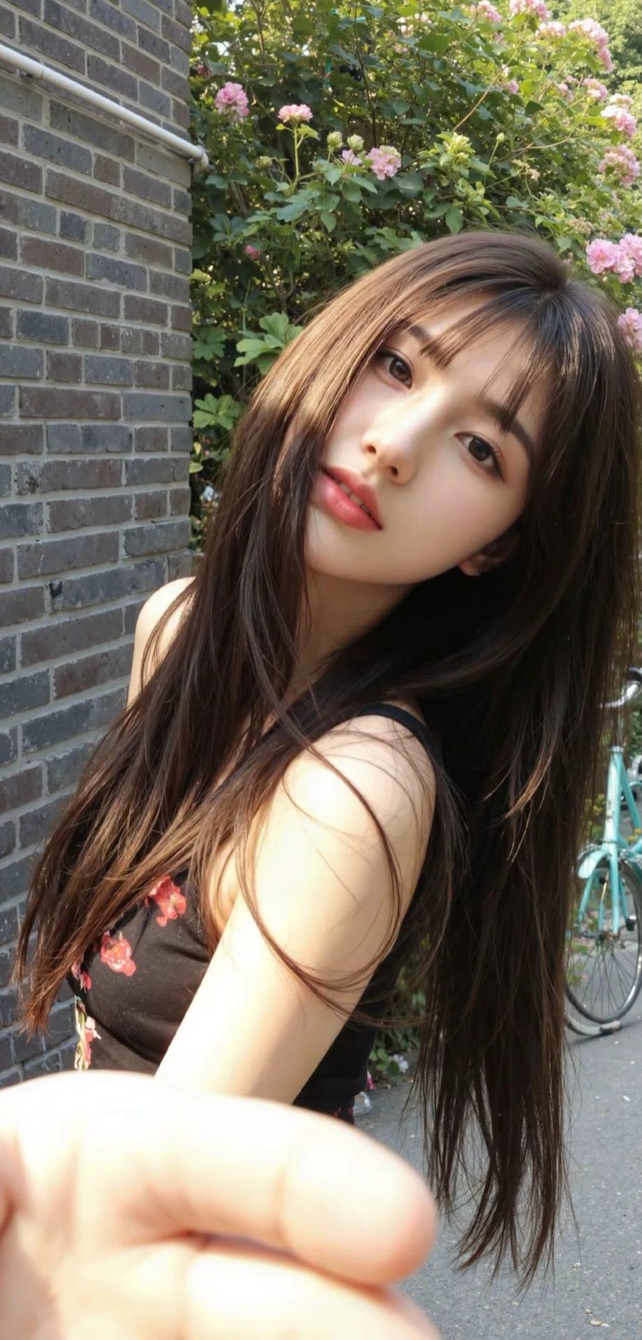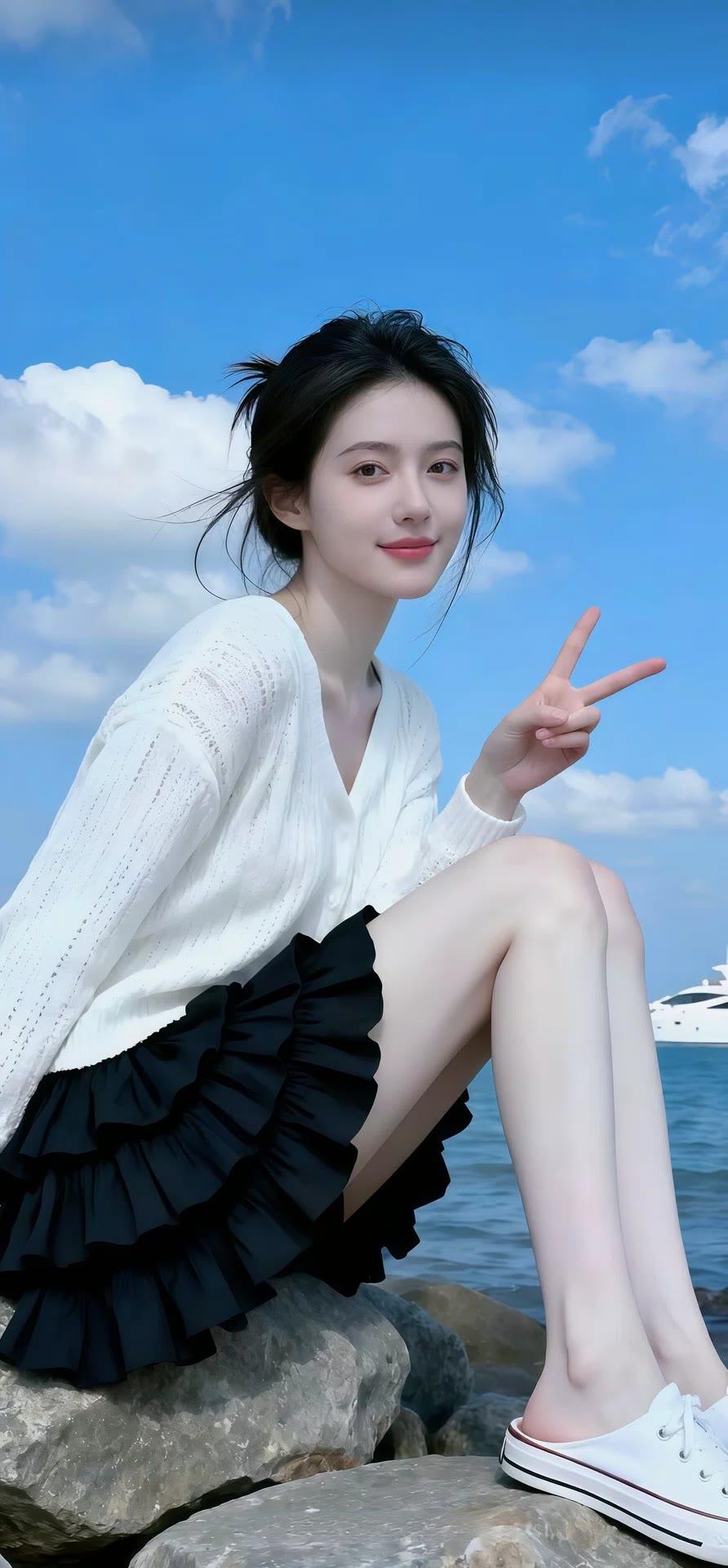姐姐在阳光下美得像幅画!乌黑长发随风晃,衬得皮肤又白又亮。修身衣把好身材衬得恰到