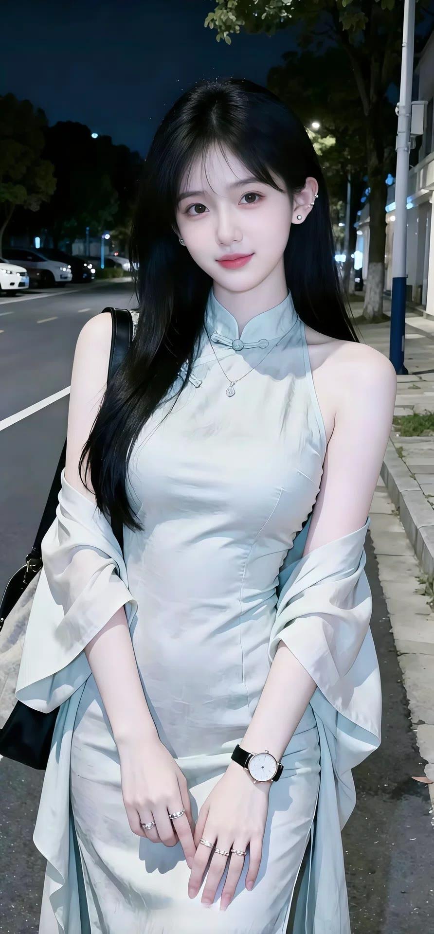 她像颗璀璨的黑宝石,黑色吊带裙完美勾勒出曼妙曲线,蕾丝细节藏着精致小心思。珍珠项