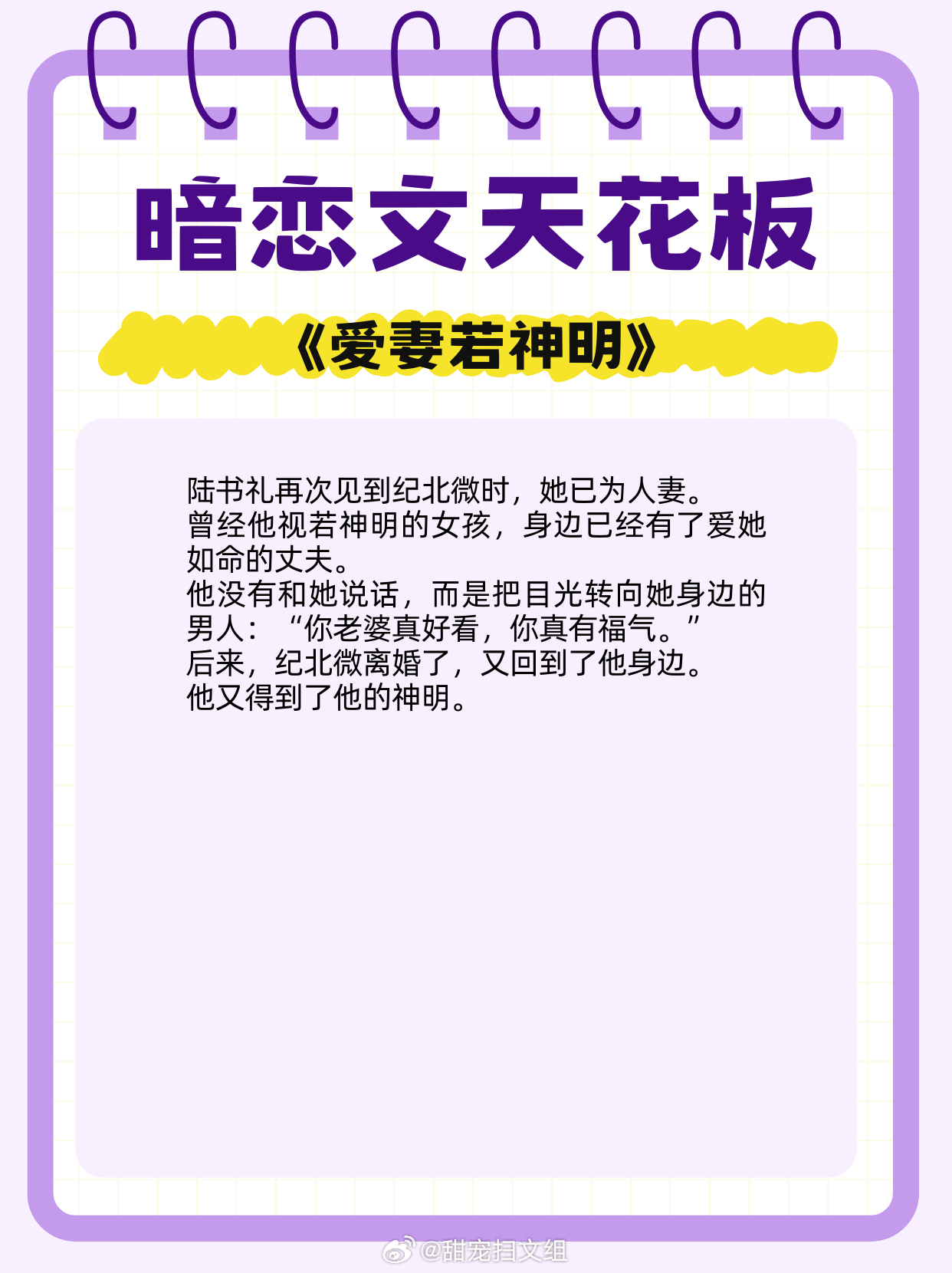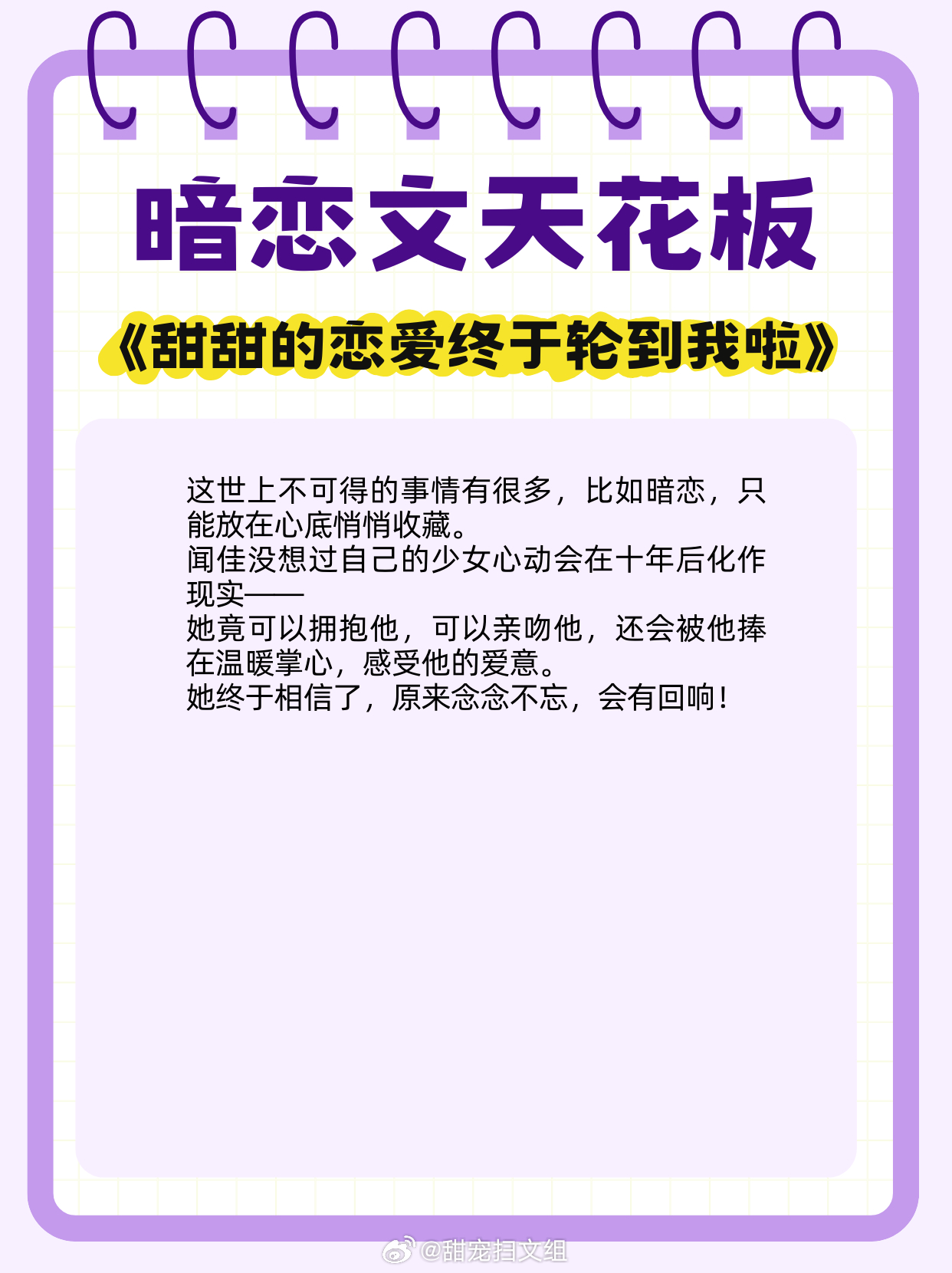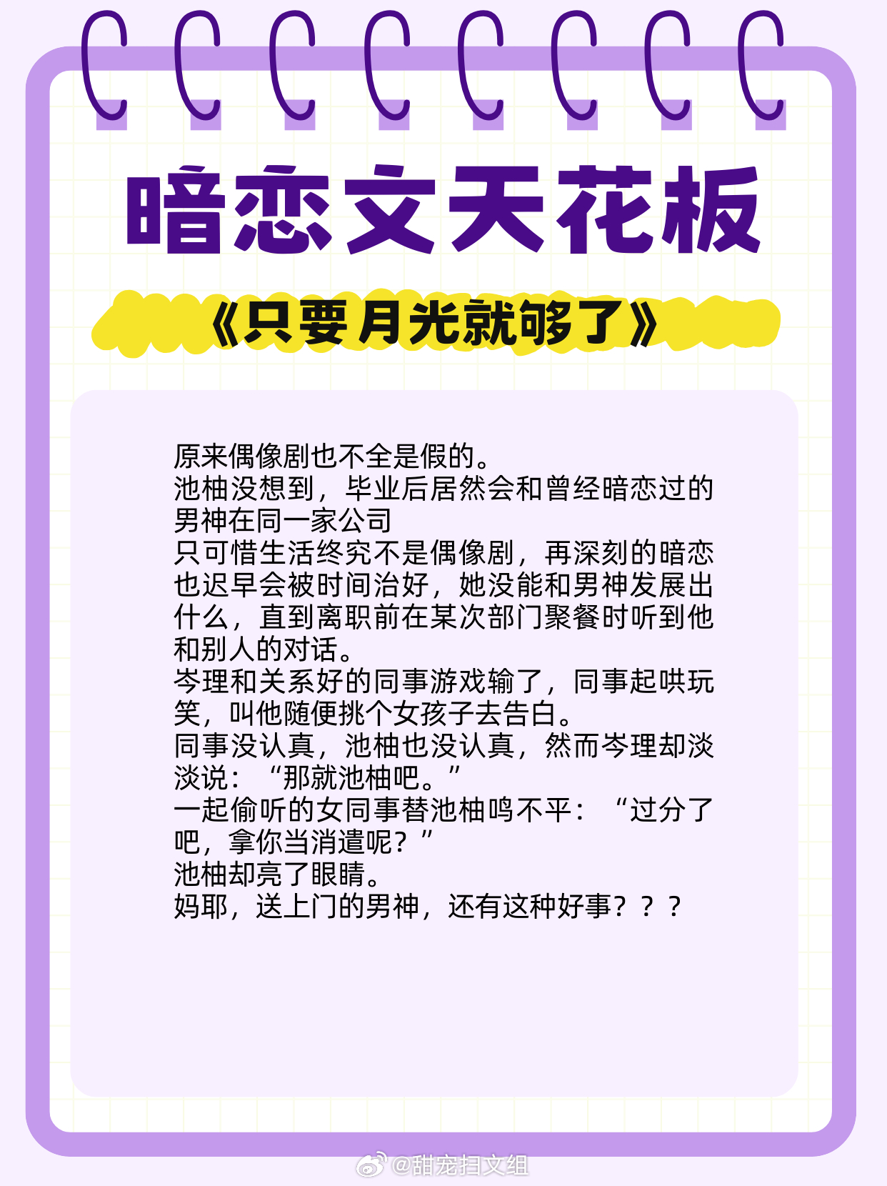 暗恋文天花板,从单向奔赴,到双向心动!1. 《关于邻居是公主病这件事情,我无可奉告》 作者:寒光里 2. 《红气养我》 作者:帘重3. 《只要月光就够了》 作者:图样先森4. 《欢愉》 作者:二宴5. 《不应期》 作者:蓝胡子小女孩6. 《甜甜的恋爱终于轮到我啦》 作者:结因7. 《爱妻若神明》 作者:范月台8. 《试婚男女》 作者:墨书白9. 《较真》 作者:打烊热门言情小说推荐 网文界的诸神之战