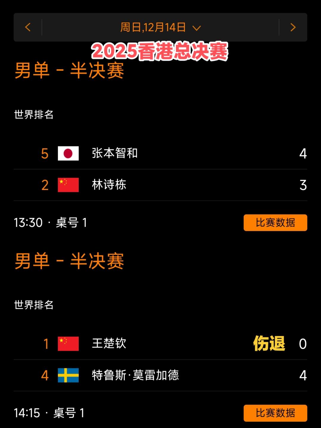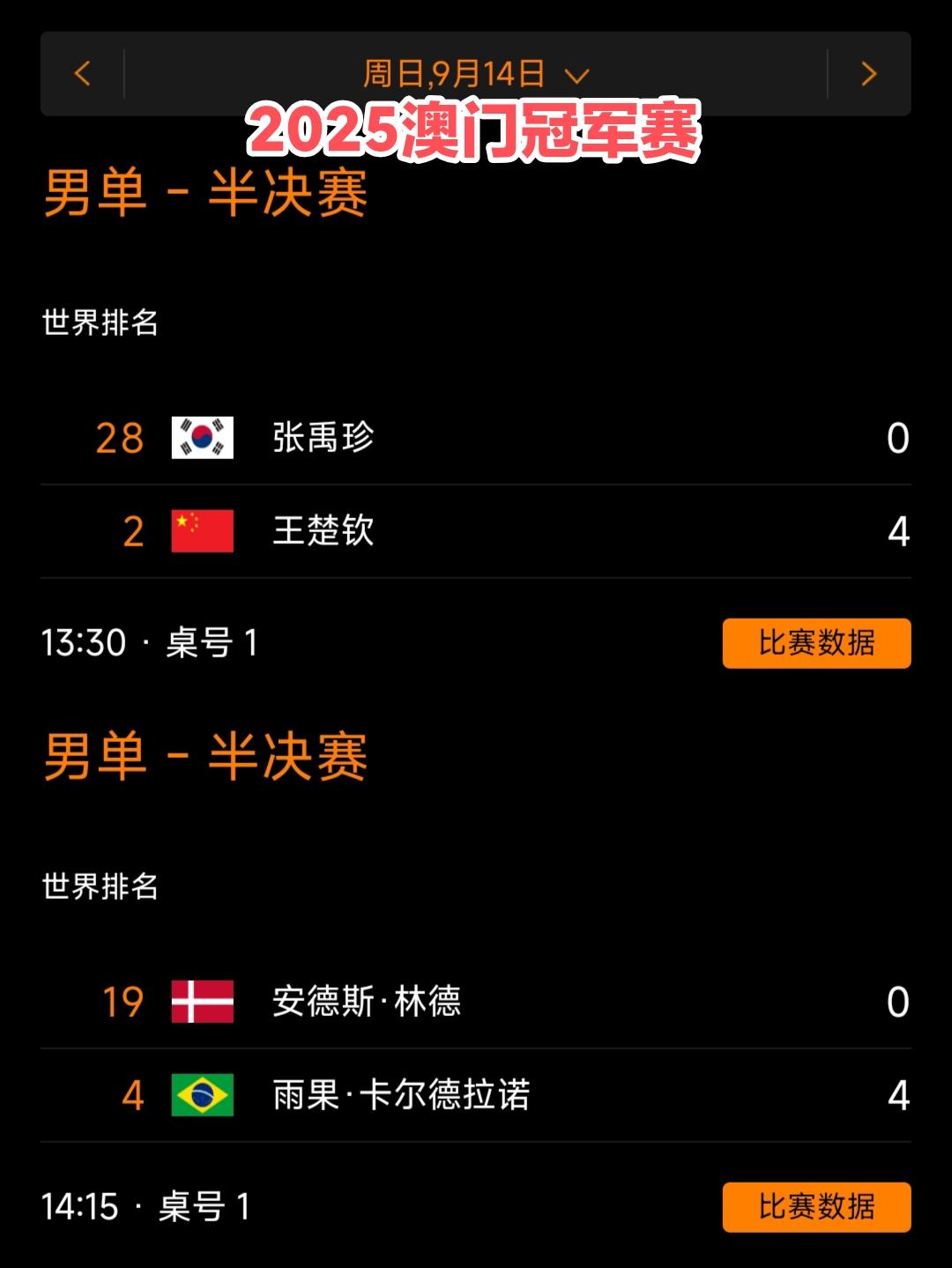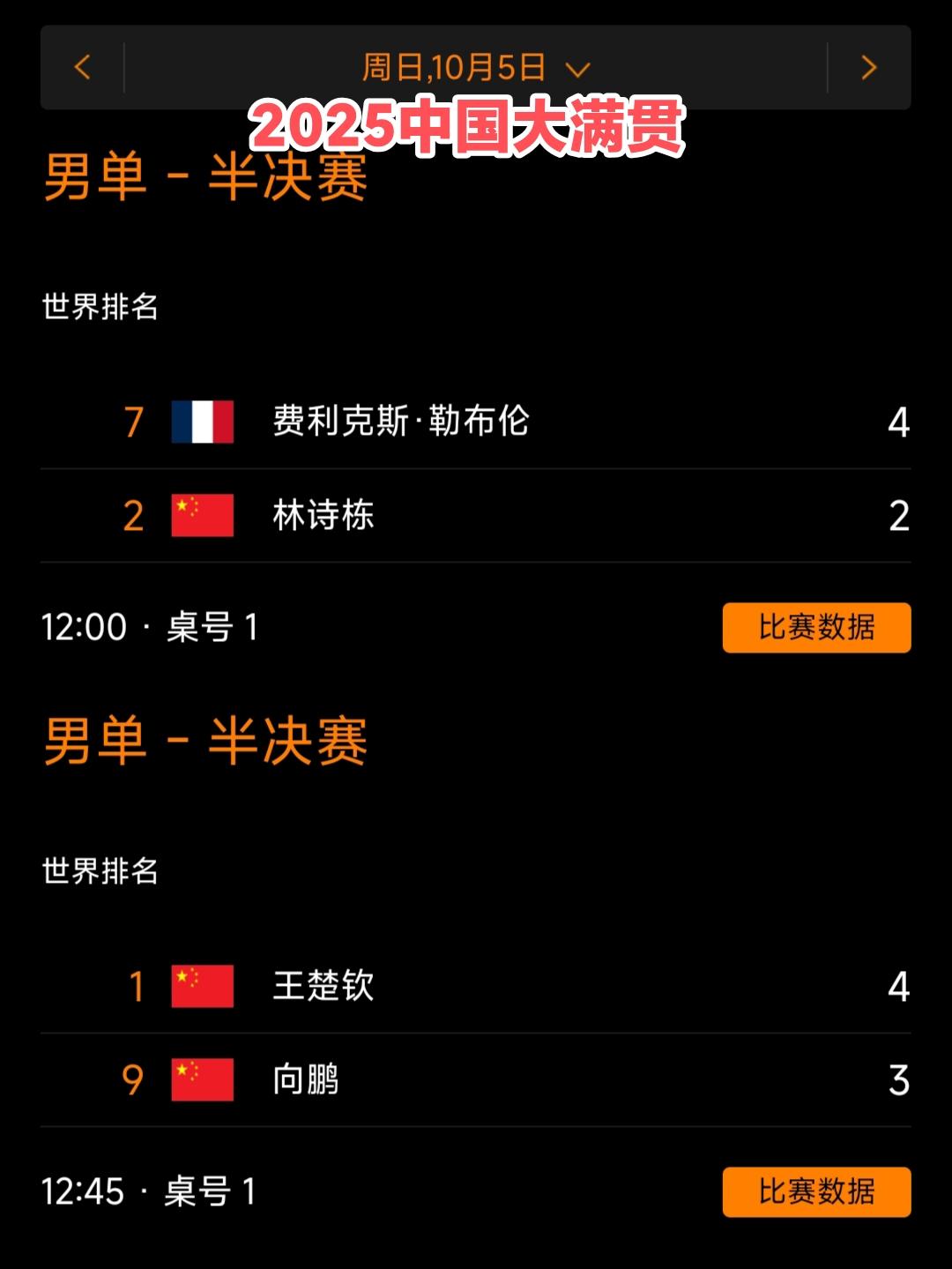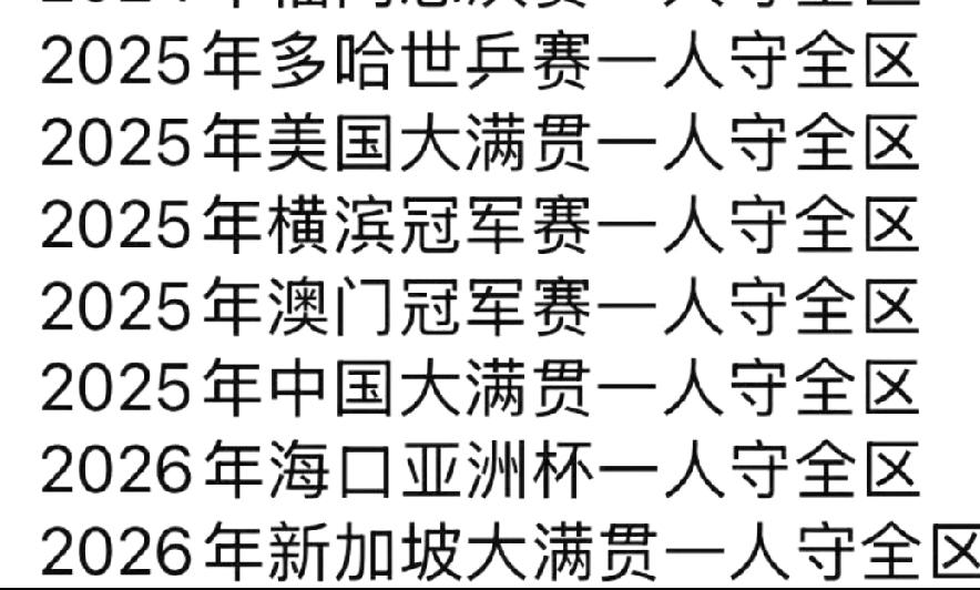 巴黎奥运会后,新加坡大满贯是楚钦第九次没有队友跟他会师决赛了! 2024年福冈总决赛,王楚钦战胜张本智和获得金牌🥇! 2025年美国大满贯,王楚钦战胜张本智和获得金牌🥇! 2025年横滨冠军赛,王楚钦不敌张本智和遗憾获得银牌🥈! 2025年澳门冠军赛,王楚钦战胜雨果卡尔德拉诺获得金牌🥇! 2025年香港总决赛,在半决赛中,王楚钦因伤退赛,另一场半决赛林诗栋3:4不敌张本智和没能进入决赛。 2025年中国大满贯,王楚钦战胜菲利克斯勒布伦获得金牌🥇! 2025年多哈世乒赛,王楚钦战胜雨果卡尔德拉诺获得金牌🥇! 2026年海口亚洲杯,王楚钦战胜张本智和获得金牌🥇! 除此之外,林诗栋获得了2025新加坡大满贯金牌🥇,向鹏获得2025仁川冠军赛金牌🥇,都是一年前的事儿了积分都清掉了! 今天晚上新加坡大满贯决赛王楚钦依然榜上有名,另一个则是省队的林昀儒,无论如何金牌都是中国的,王楚钦保重身体,快乐乒乓吧! 拿金牌,为你骄傲! 拿银牌,为你自豪! 你已经是新加坡体育中心最靓的崽!