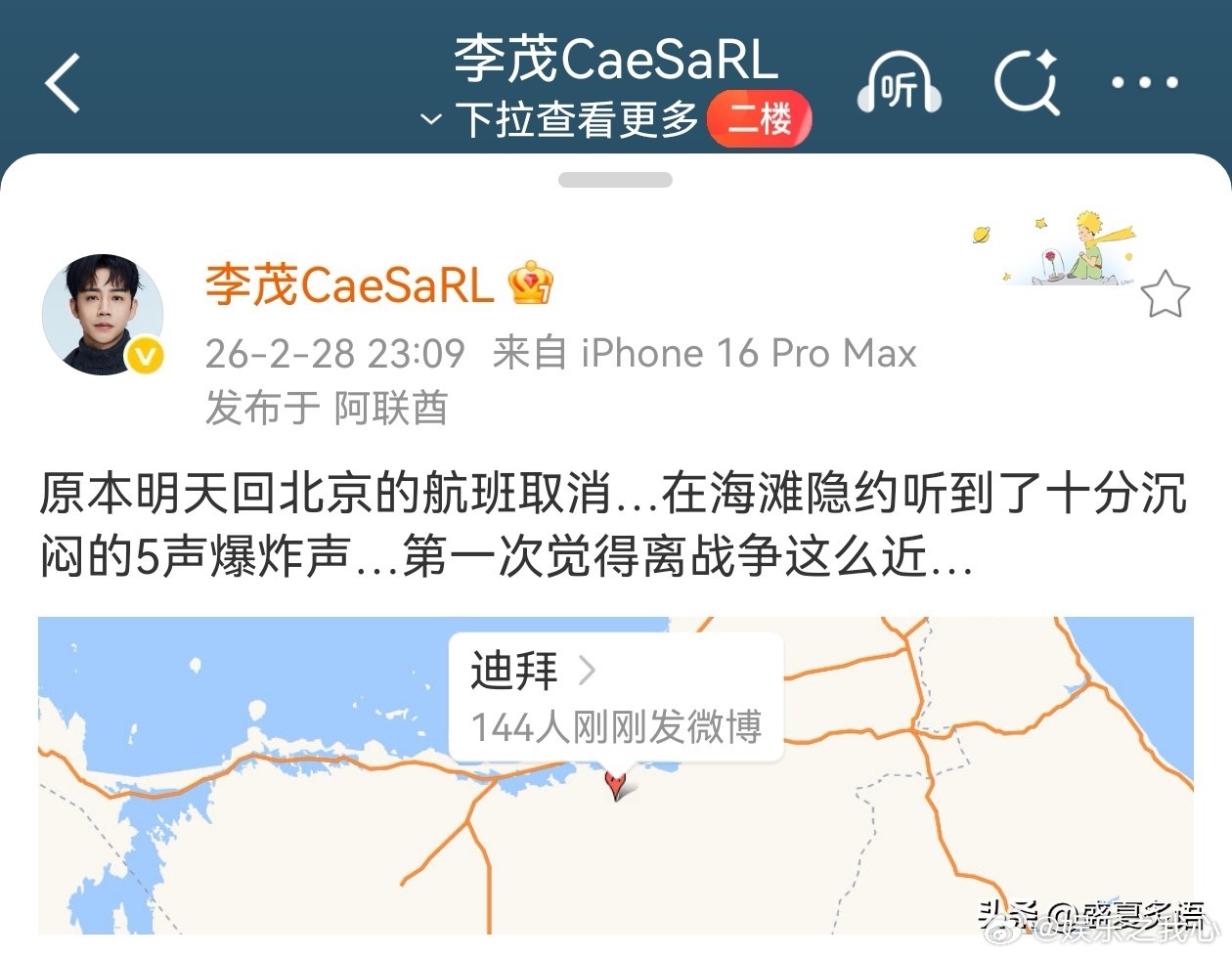 这是今日娱乐圈最惊心动魄的一幕!2 月 28 日,娱乐圈整日风平浪静,谁能料到深夜竟传来一则揪人心弦又令人胆寒的消息。演员李茂因满心恐惧,久久难以入眠,在社交平台发文,那文字着实让人揪心。彼时,他正在迪拜。他用手机敲下一条令全网揪心的微博:“原本明天回北京的航班取消… 在海滩隐约听到了十分沉闷的 5 声爆炸声… 第一次觉得离战争这么近…”这条微博发布的节点,正值中东局势急剧升级的关键时刻。当天下午,伊朗为报复美以联合空袭,向阿联酋等海湾国家的美军基地发动导弹袭击。阿布扎比和迪拜先后传出爆炸声,随后,阿联酋宣布关闭部分领空,迪拜两大机场的所有航班运营被迫暂停。李茂的行程,成了这场地区冲突的一个小小缩影。他本计划 3 月 1 日返回北京,却因领空关闭、航班停飞而滞留当地。他在海滩听到的 “5 声沉闷爆炸声” 并非凭空而来。据多方消息,当天阿联酋防空系统多次拦截来袭导弹,拦截产生的冲击波以及碎片坠落,正是爆炸声的源头。甚至有导弹碎片坠落在阿布扎比居民区,导致平民伤亡。此时的迪拜,早已不复往昔那个以奢华与安全闻名的度假天堂模样。哈利法塔启动了紧急疏散程序,游客在街头慌乱奔逃,机场里满是滞留的旅客。像李茂这样的公众人物,也是头一回如此真切地感受到战争的步步逼近。他的这条微博,如同投入湖面的石子,瞬间打破了国内网友对中东冲突的遥远认知。曾经,中东的战火纷飞在很多人眼中不过是新闻里的画面,是遥远世界的故事。而李茂的亲身体会和文字描述,让大家意识到,和平其实是如此脆弱。在大多数人的生活中,和平是习以为常的存在,我们在和平的环境里工作、生活、享受。可在世界的某些角落,战争却随时可能爆发,打破人们原本平静的生活。那些爆炸声、那些流离失所的人们、那些无辜的伤亡,都在提醒着我们,和平并非理所当然。李茂的经历,让我们看到了战争的残酷和无情。它不会因为你是明星,或是普通人而有所区别,它所到之处,带来的只有恐惧、破坏和伤痛。这也让我们更加深刻地认识到,和平是多么珍贵,我们应该珍惜这来之不易的和平,同时也希望世界上那些仍处于战火中的地区,能早日恢复和平,让人们重新过上安宁的生活。