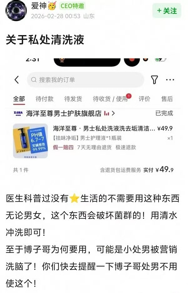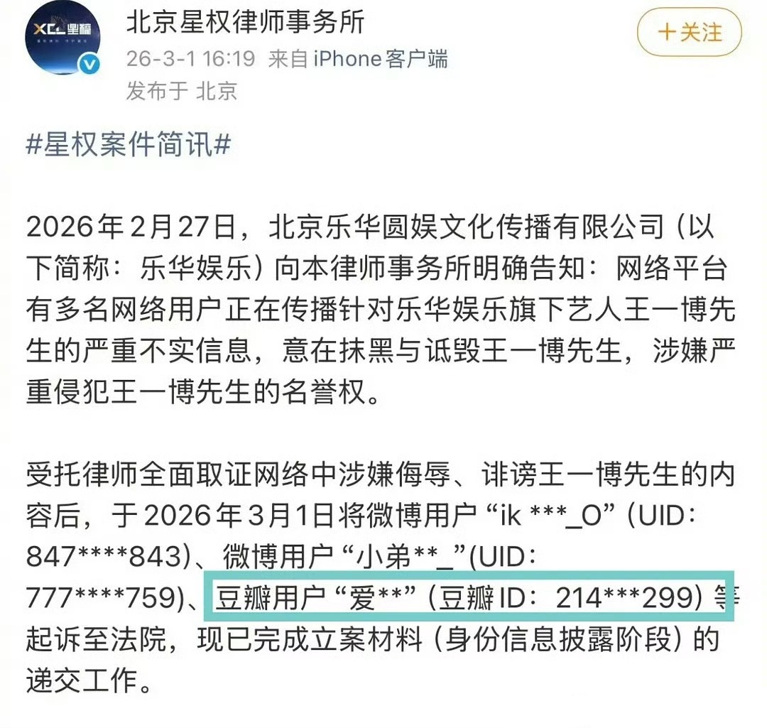 王一博把科普私处清洁液的网友给告了。