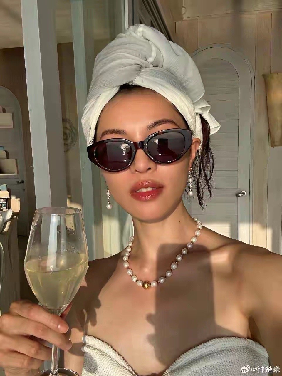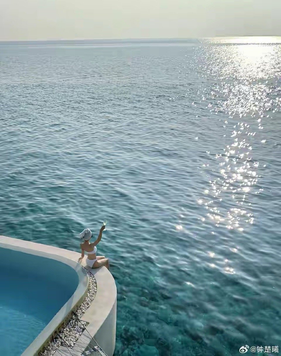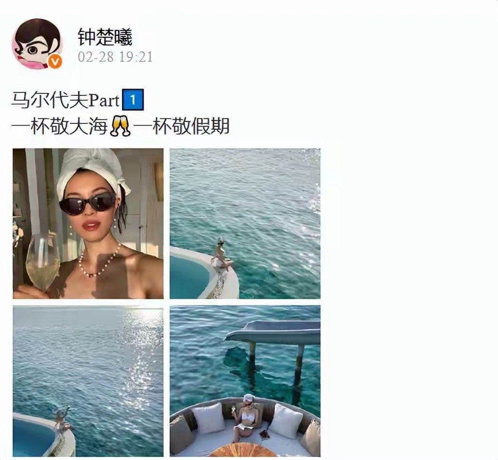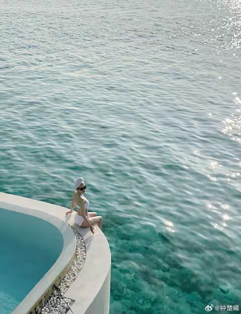 钟楚曦马尔代夫晒泳装照!肤白貌美红唇迷人,手上肌肉很多没少练