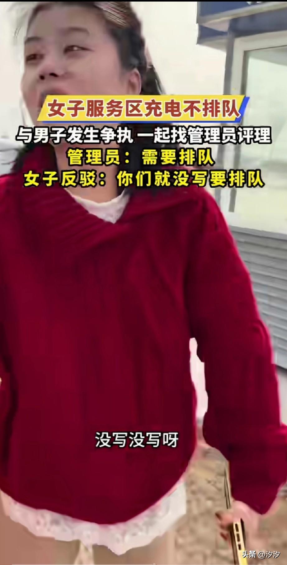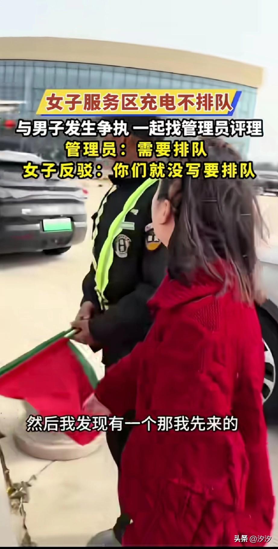 现在的女生越来越矫情了, 到底都是谁惯的? 在高速服务区充电, 居然不想排队,想插队, 男子看到也是很无语, 拿起手机就给她录了, 女子还举起手机说谁不会拍, 不要拉着男子去问保安大爷, 保安大爷告诉他排队充电, 女子居然还娇小着,你这也没写, 这把男子气的不行, 和女人讲道理真的很难, 尤其是和那些不讲理的女人, 现在都是被惯成这样了, 即面对陌生男子也不怂, 还真是和谐社会救了这些人, 大家觉得现在的女生为什么不讲理?