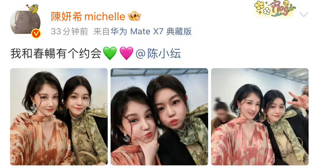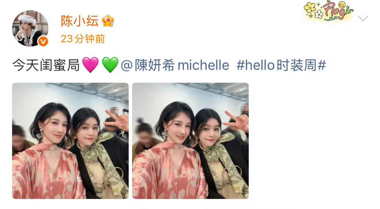 陈妍希陈小纭合照陈妍希陈小纭米兰闺蜜局米兰闺蜜局上线!两位美女同框合照,画面太养