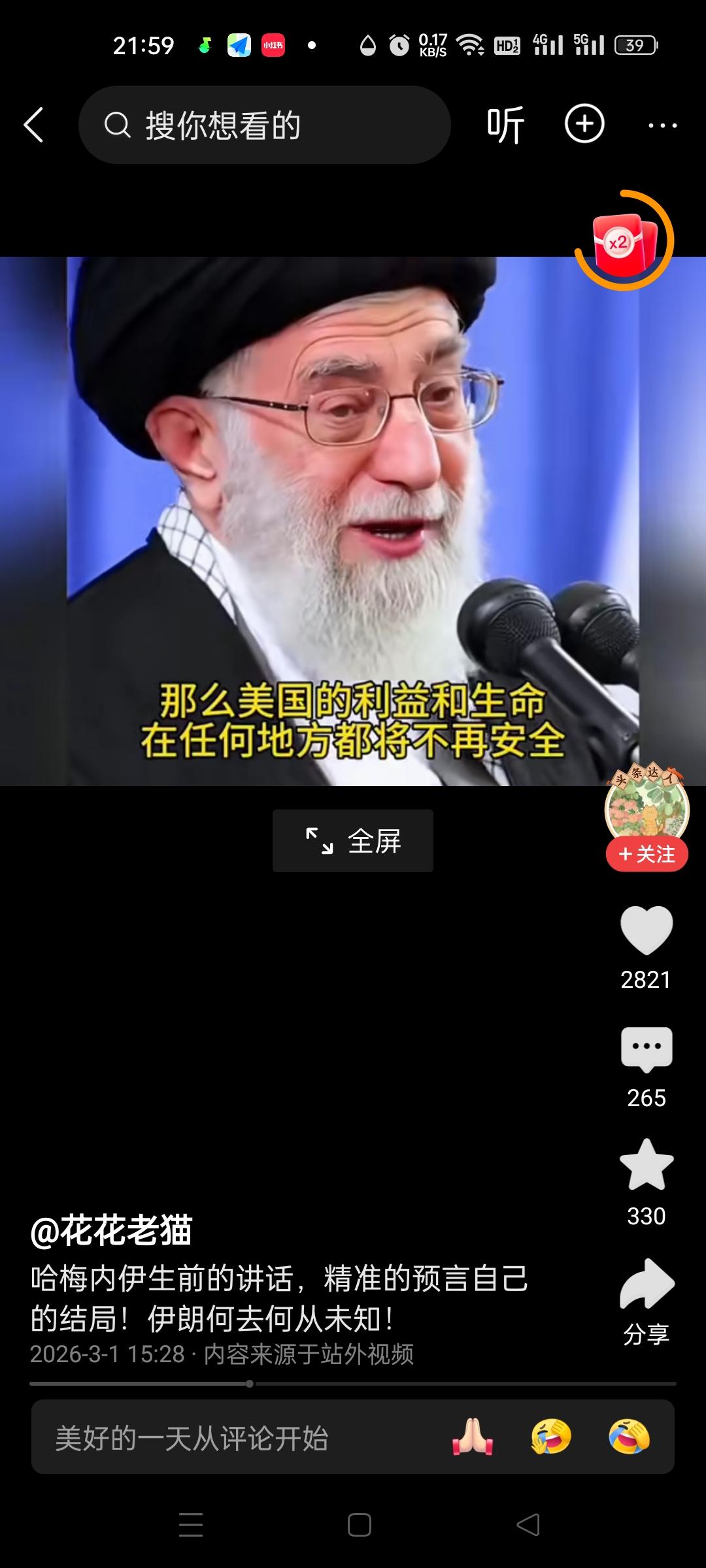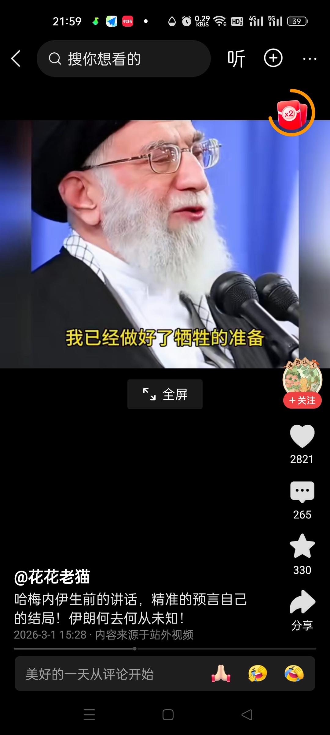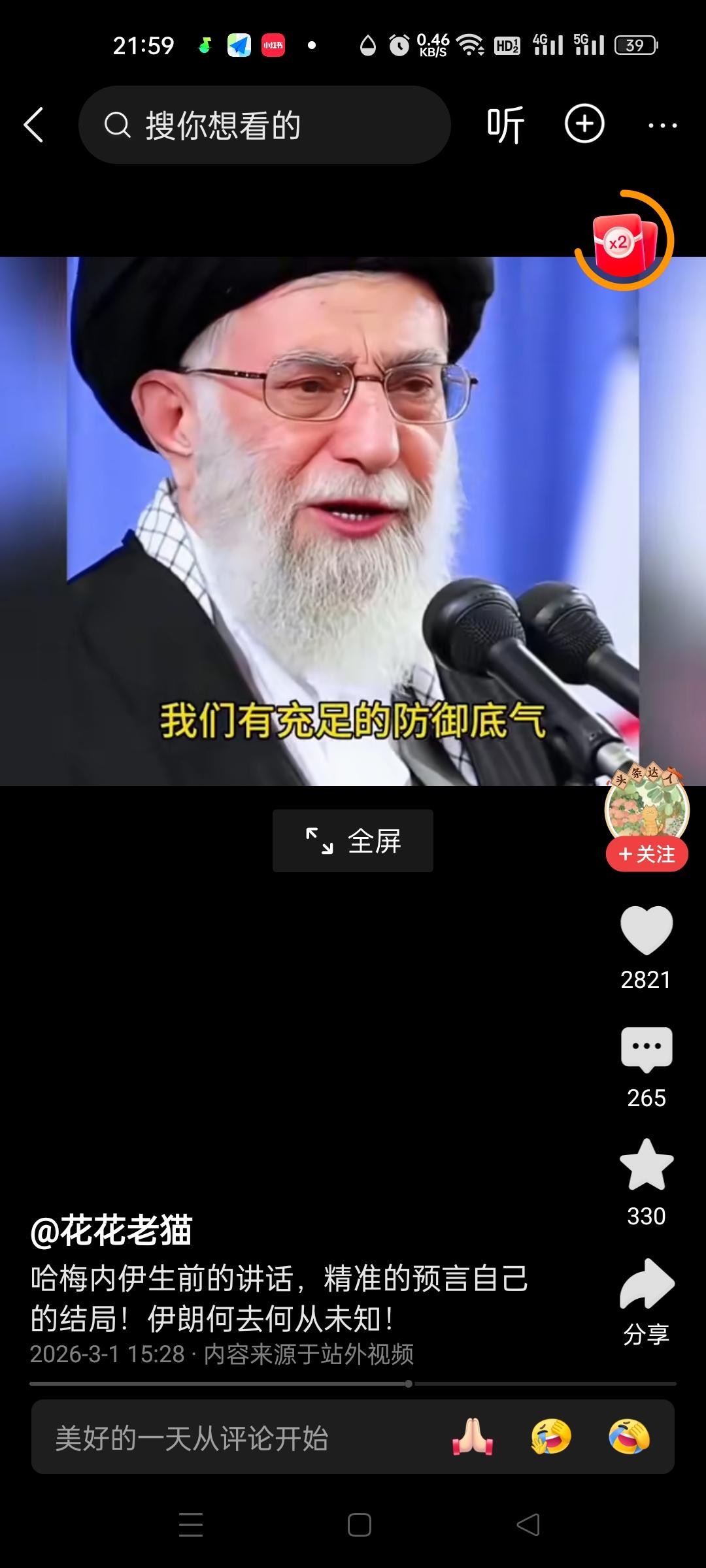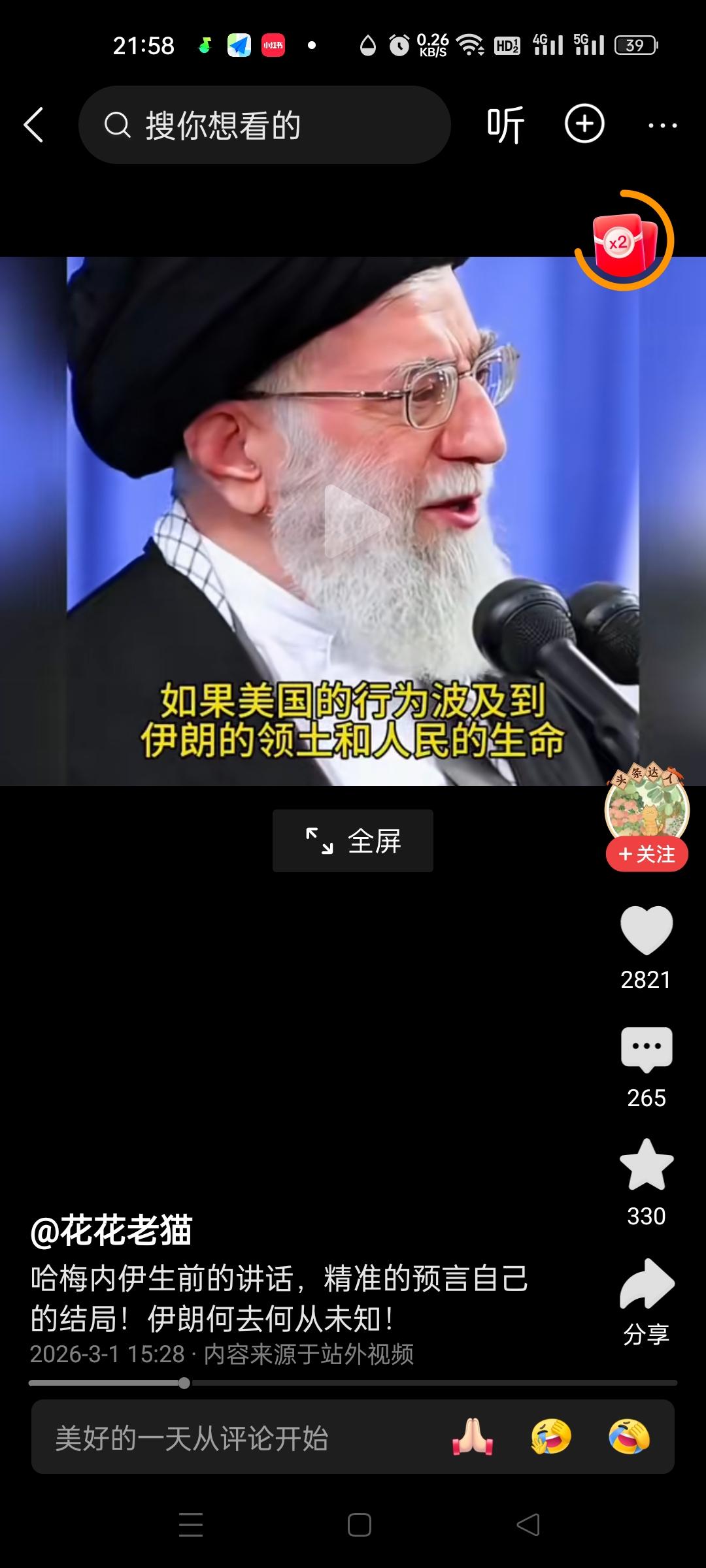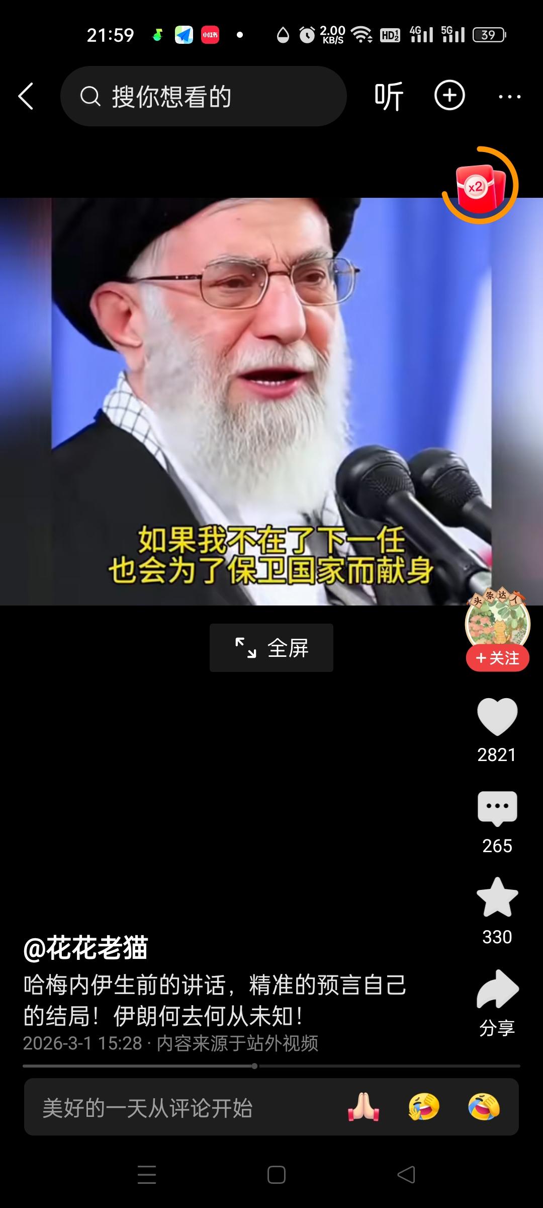 看了这段讲话,才发现哈梅内伊,真正配得上是一位精神领袖! 只是他一语成谶,提前预感到了自己的死亡。他不仅精准地预见了自己的结局,还为此做好了布局,安排好了接班人。 2026年2月28日,当美以的炸弹落下,这位勇敢的令人尊敬的老人没有退缩,没有转移,而是在工作岗位上坚守至生命的最后一刻,他以实际行动践行了自己的誓言,以身殉国。他用自己的生命,诠释了何为“言出必行,言出法随”,对得起“精神领袖”这个至高无上的称呼。 他生前坚信,面对强敌入侵,伊朗唯有选择坚决抵抗,将战争拖入持久战,美国被拖垮,方能寻得一线生机。这不仅是为了国家存续,更是为了民族的尊严。但愿如他所愿,伊朗能团结起来,坚决抵抗外国侵入,保卫自己的祖国。伊朗领导讲话
