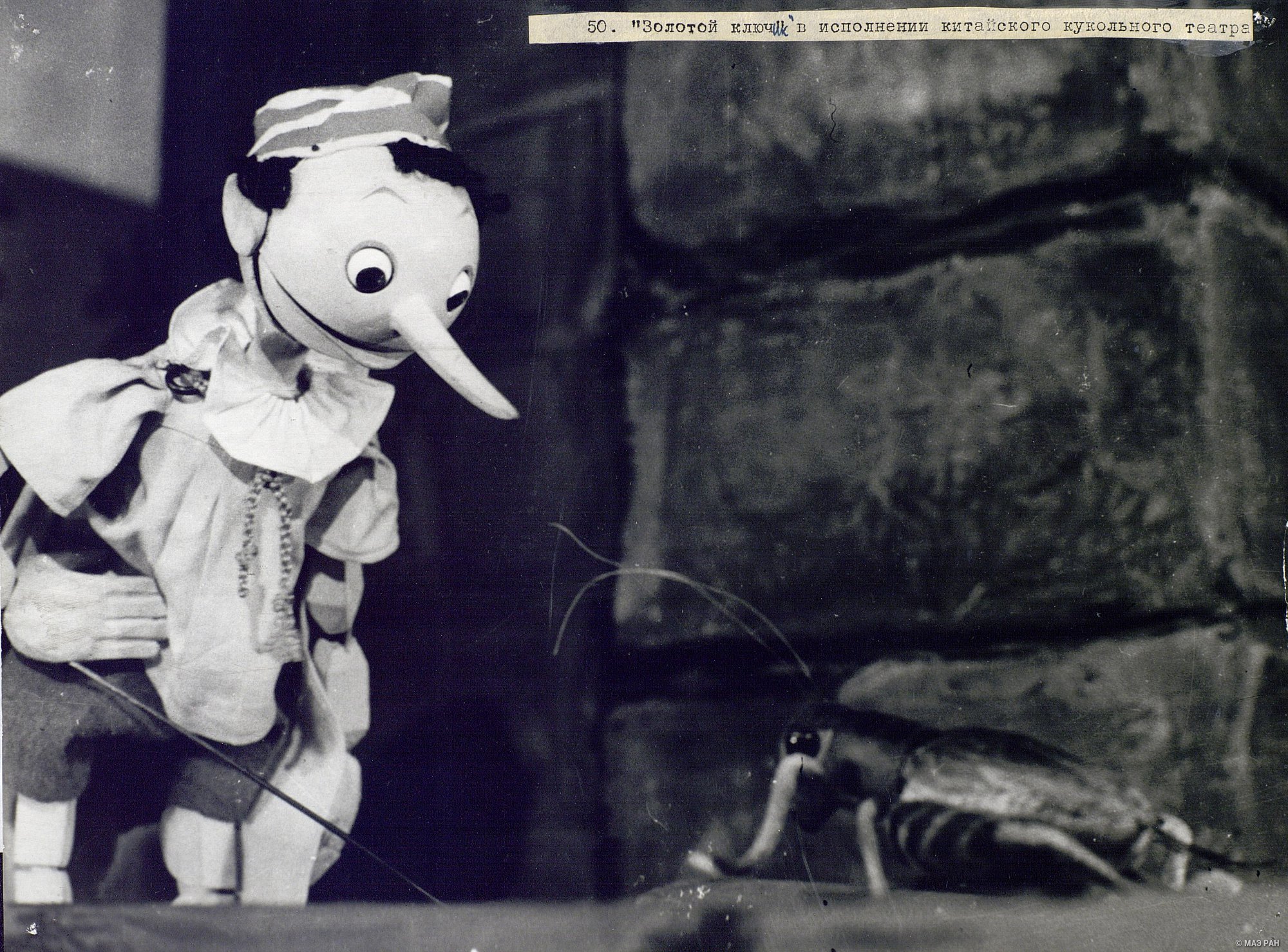 1950s,木偶剧团表演的木偶剧《金钥匙》。