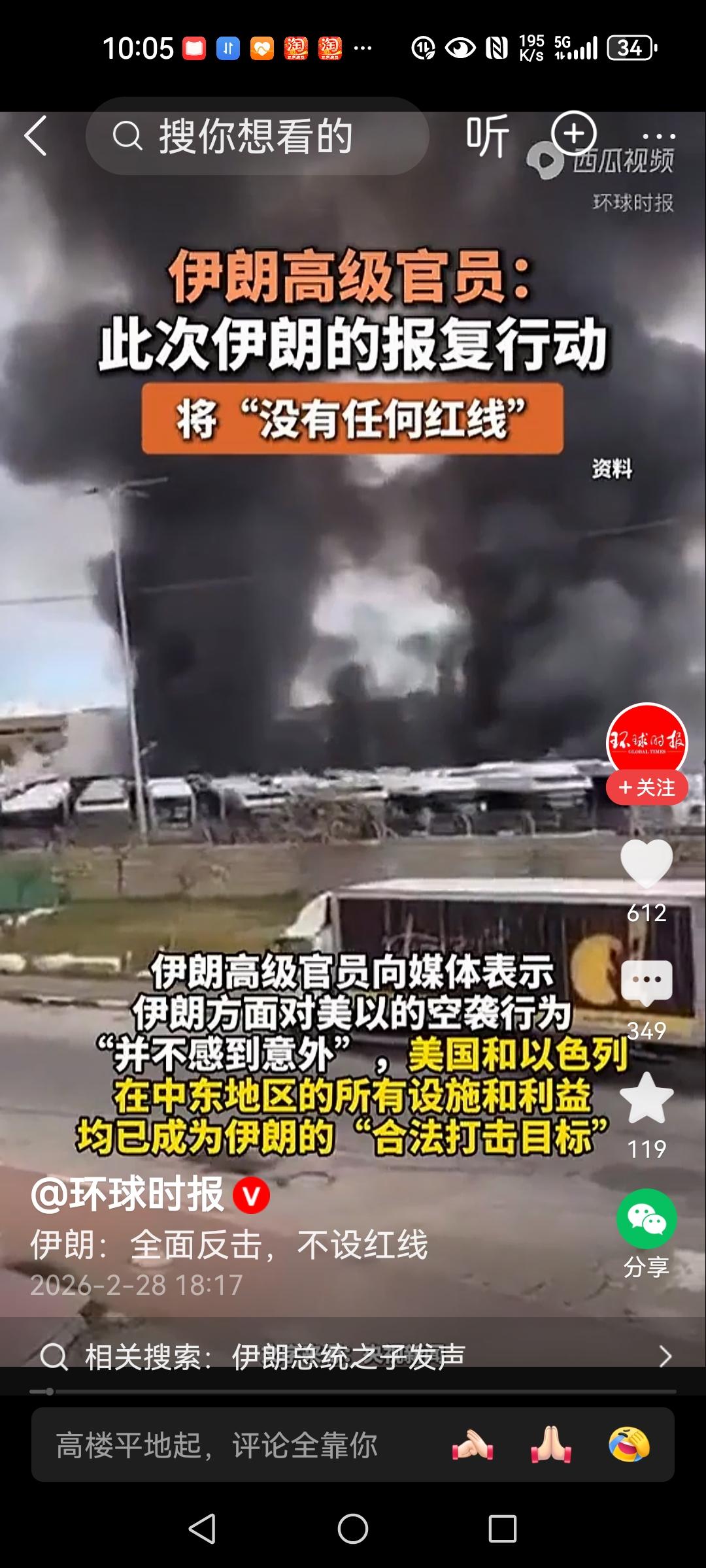 伊朗报复后呢?会让失望吗? 1、此时,毫不犹豫的报复,顺理成章,美以只有挨揍的份,没有报复对象,哈梅内伊死了,难道炸百姓吗? 2、虽然哈梅内伊死了,报复依然凌厉,还有章法,美以并未看到群龙无首的混乱,说明美以的擒王战术完全失败,战争成了互殴,怯战心理就没有了,拖垮的也许就是特朗普和内塔尼亚胡。 3、伊朗和胡塞武装一边封锁一个海峡,这也是高手支招,从石油上下手,油价飙涨,都跟着沾包受损。 4、报复了多处美军基地,邻国并未拦截: 一是都认为伊朗不敢炸。 二是别国不想直接与伊朗为敌。 此时,也许美以在避其锋芒,静等报复结束呢,伊朗的报复,终归冷静,报复完了呢?接下来如何发展? 1、如果伊朗权利顺利交接,并且更加强硬,是一种局势,会顺利吗? 2、战争不是一蹴而就的事情,如果不能速战速决,接下来的就是泥潭,那才是以色列希望看到的。 3、干掉哈梅内伊,拉美国参战,以色列已经达到了既定目标,伊朗呢?只报复一下子吗? 4、会不会摁住以色列猛揍呢?未可知!