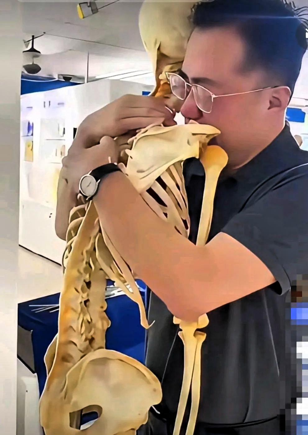 我看哭了!一名中年男子抱着一架骨骼哭的不能自已,这可是大体老师呀,他为什么哭? 这副骨骼的捐献者,是我国小儿外科的重要开拓者张金哲院士,离世后他以大体老师的身份,继续为医学教育奉献。 早年我国缺少专门的小儿外科,儿童外科疾病治疗条件有限,不少患儿难以得到规范救治。张金哲投身这一空白领域,长期致力于儿童外科诊疗体系的建设,自主研发多种适合儿童的手术器械,有效提升了儿童手术的安全性与治愈率。 他从医七十多年,长期坚持临床工作与教学,对待患儿耐心细致,始终以温和、负责的态度面对每一个孩子与家庭。即便年事已高,他依然坚守岗位,坚持为学生授课,把经验与医术一代代传承下去。 他一生专注于医疗与教学,淡泊名利,生活简朴,将全部精力投入到儿童健康与医学人才培养中。2022年,102岁的张金哲离世,按照生前意愿捐献遗体,用于医学教学,成为无言的良师。 学生面对恩师的遗骨痛哭,不仅是师徒情深,更是对一位医者一生奉献的深切缅怀。张金哲用一生践行医者使命,从开创学科、救治患儿,到遗体捐献,始终坚守初心,不计个人得失。 他的行为,不仅体现了崇高的医德,更展现了老一辈医学家对国家、对孩子、对医学事业的赤诚。这一幕也让更多人理解了大体老师的意义,理解了什么是真正的医者仁心。 真正的伟大,往往藏在一生的坚守与奉献里。张金哲院士虽已离去,但他的医术与精神,仍在一代代医生中延续,继续守护着无数儿童。