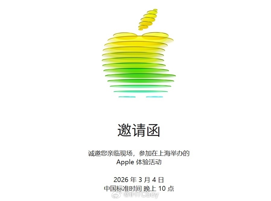2026苹果春季发布会3月4日晚上10点上海举行Apple体验活动