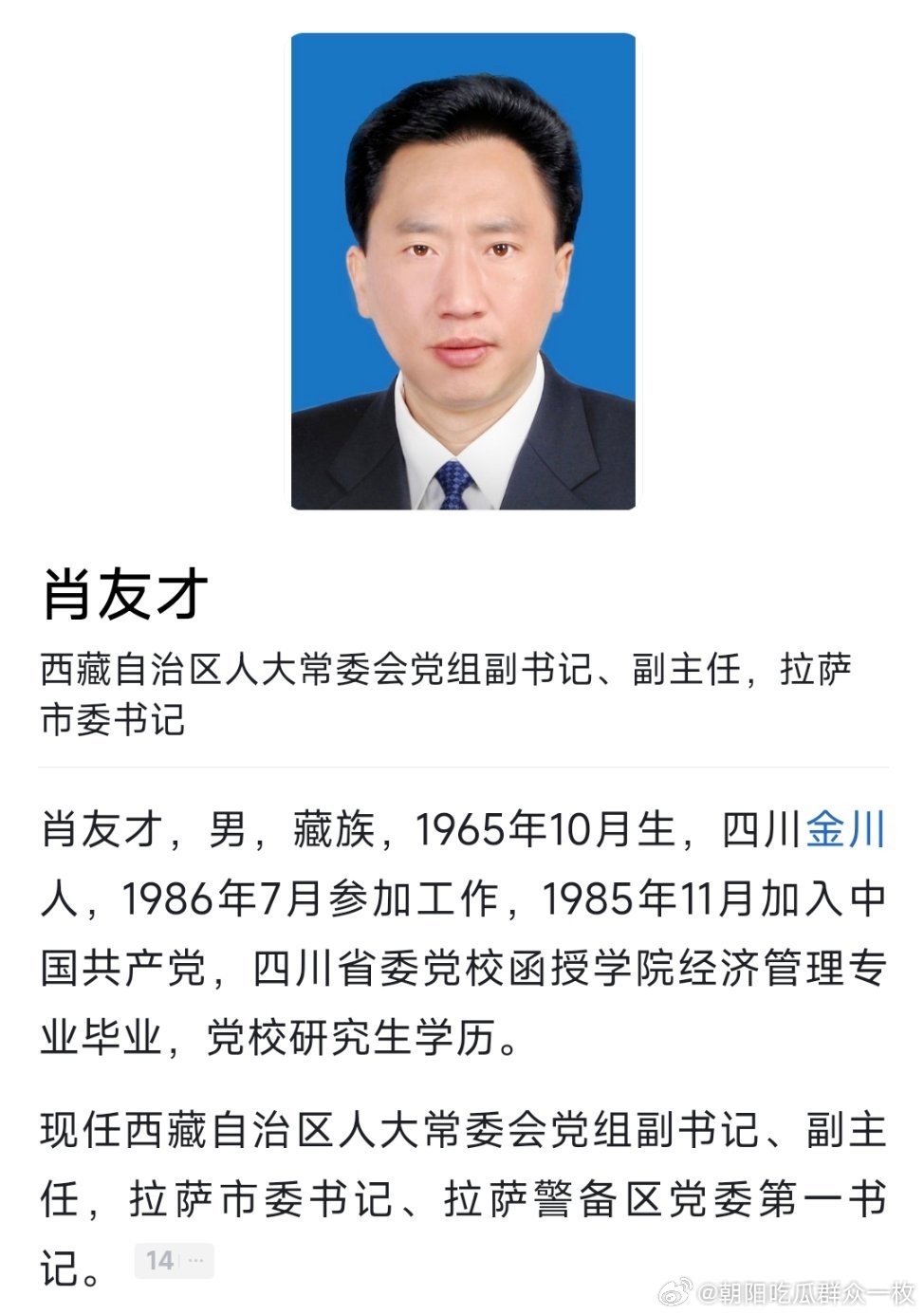肖友才不再担任西藏自治区党委常委,此前已任西藏自治区人大常委会党组副书记、副主任
