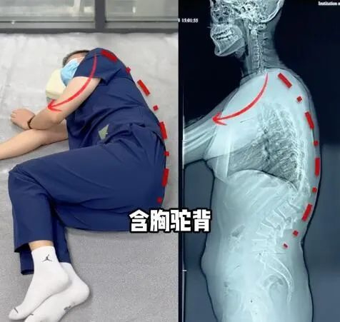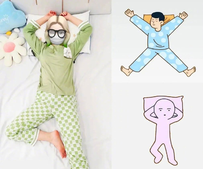 “虾皮式”睡姿,身体蜷缩明显、弯腰驼背。好处是内心安全感强,能缓解身心压力,相对容易入睡。这一睡姿容易导致腰椎反弓,过度牵拉脊柱,拉开椎间盘之间的间隙,加重腰椎间盘突出;同时浑身血液流通不畅,不利于身体健康。
