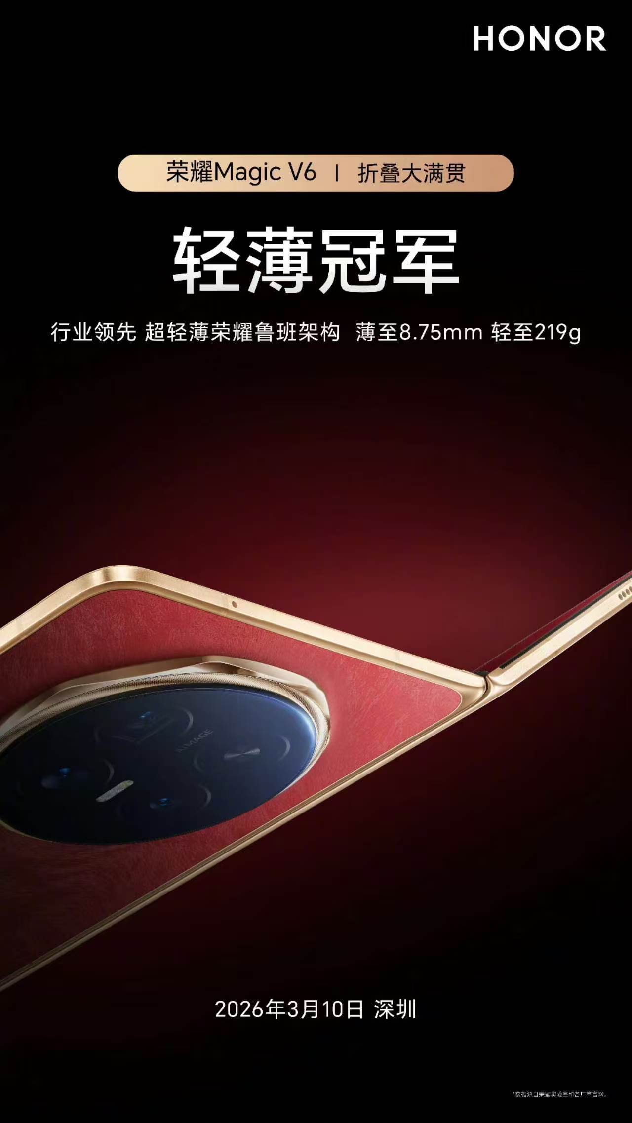 荣耀MagicV6折叠屏轻薄纪录保持者荣耀Magic V6以折叠态8.75mm的极致轻薄机身,再次刷新行业折叠屏轻薄纪录!