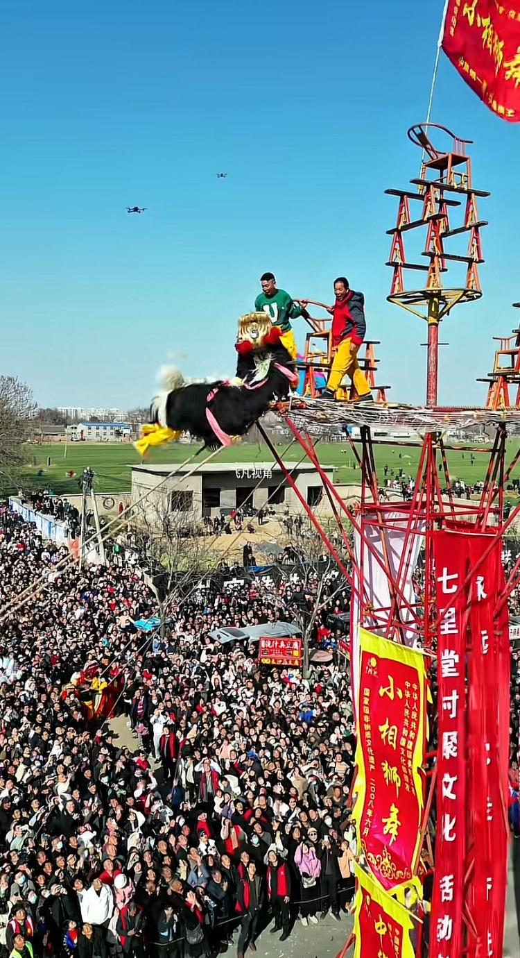 网上那些爱搞对立的人,在夸赞南狮优雅美观之际,却拼命贬低北狮,称其为不入流的杂耍! 北狮实则是极具阳刚之美的传统武术技艺。南狮的技巧,北狮表演者皆能驾驭;而北狮的功夫,又有哪个南狮表演者敢去尝试? 北狮表演需要过人的胆识、超强的力量与精湛的技巧,每位表演者都是武术高手。其动作大开大合,节奏明快,刚劲有力,充满力量感。表演场地不拘,或为平地,或为高台,或为梅花桩,诸多表演技法南狮根本难以企及。河北铁狮 中国北狮 天津北狮