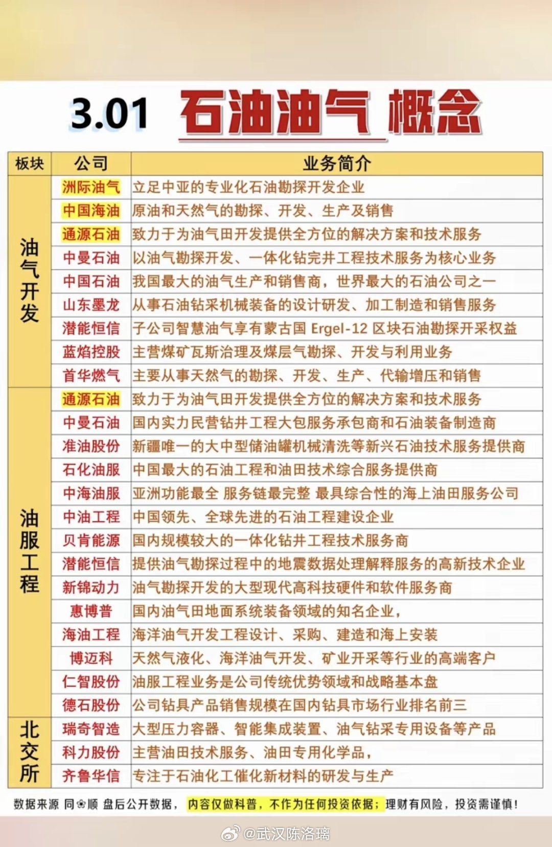 3.1周日 石油油气概念!1.油气开发2.油服工程3.北交所尤其是海油开采,海油运输等受到关注。