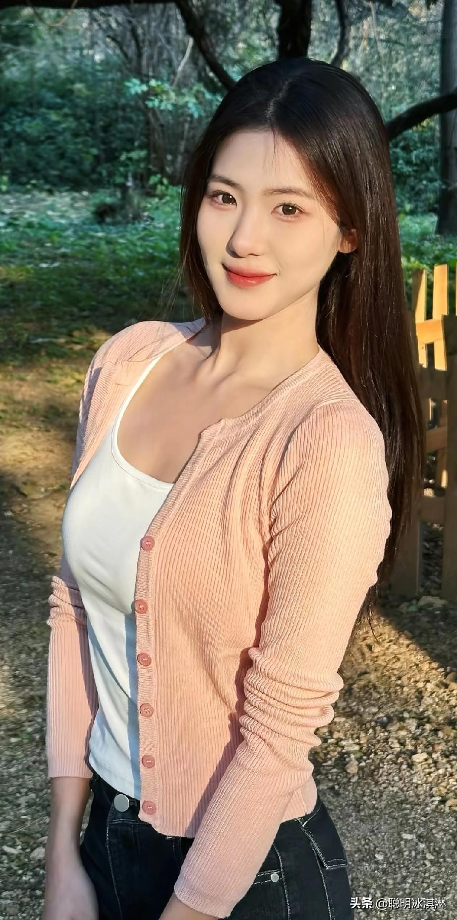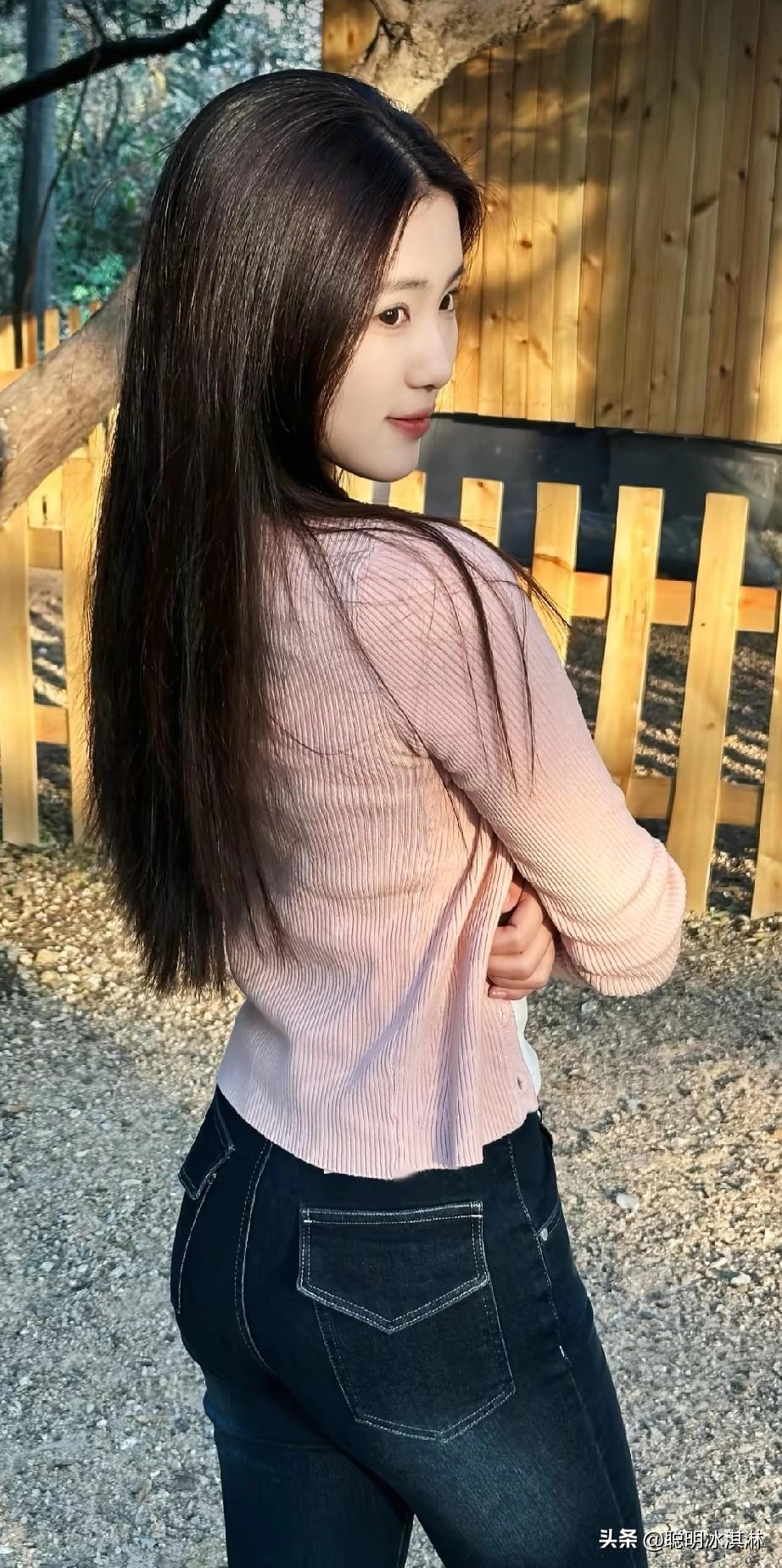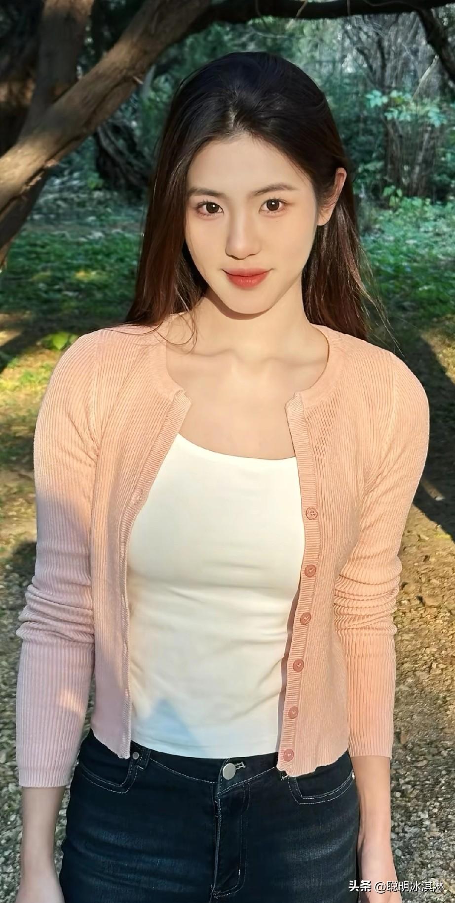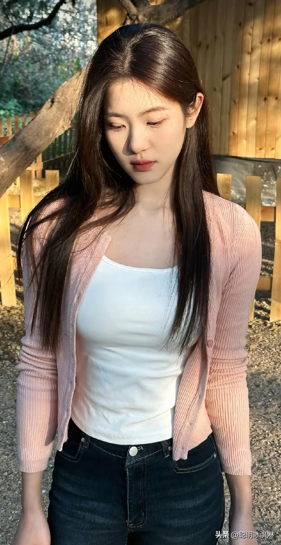 粉色针织衫+白色背心+牛仔裤,简约又温暖!