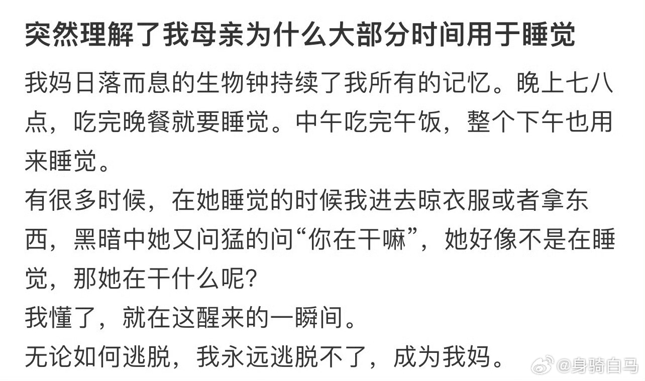 突然理解了我母亲为什么大部分时间用于睡觉