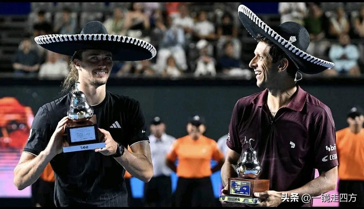 ATP500阿卡普尔科男单决赛,之前淘汰了吴易昺的意大利球员科博利以7-6(4)、6-4击败美国名将蒂亚福夺冠,这是他拿到的第二个500赛冠军,而首次打进500赛决赛的蒂亚福与首冠失之交臂。头号种子兹维列夫虽然单打出局,但最终与梅洛一起赢得了男双冠军。颁奖仪式上,给选手们带上了墨西哥大檐帽,画面很有趣。