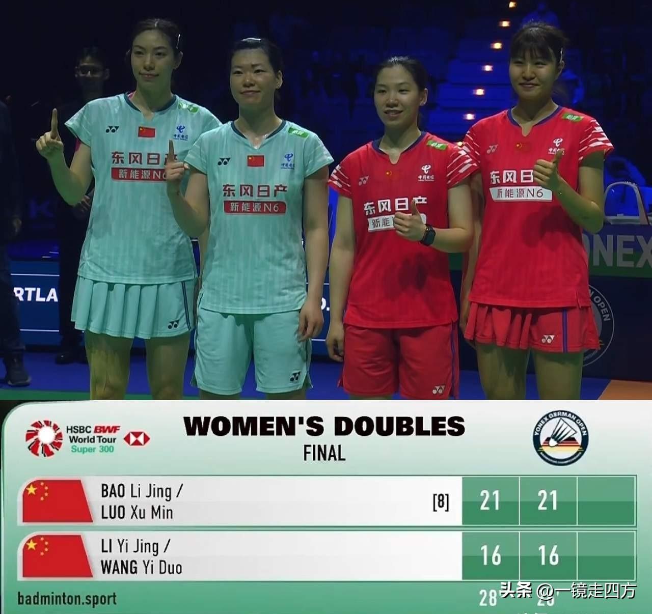 德国羽毛球公开赛落幕,中国队在决赛两场外战全部取胜,加上两场德比战,共收获4冠2亚,成为最大赢家,仅丢掉男单一项冠军。男双决赛,半决赛力克队友梁王组合的陈柏阳/刘毅迎来本站黑马法国组合马尤/维利热,后者一路连胜谢定峰/苏伟译、李芳至/李芳仁、邱相榤/王齐麟等多对实力组合杀入决赛。决赛中,陈柏阳/刘毅在17-21先丢一局的情况下稳住心态,以21-15、21-12连胜两局逆转对手,继2023年瑞昌赛和奥尔良赛之后,终于拿到近三年来的第三冠。混双决赛,程星/张驰以21-12、21-17直落两局完胜丹麦组合麦斯/布施,也终于打破了长达两年的冠军荒。 女单决赛,23岁的韩千禧面对世界排名第二的队友王祉怡,发挥更加出色,最终以21-19、22-20险胜,首夺超级300赛冠军,也是国羽女单本赛季首个巡回赛冠军,终于安洗莹不参赛了,可惜王祉怡还是没能拿到冠军。女双决赛,鲍骊婧/罗徐敏以21-16、21-16战胜队友李怡婧/王漪朵夺冠,有趣的是,鲍骊婧和李怡婧之前是配了很久的搭档,这对“双婧组合”一个月前刚刚在印尼赛收获亚军,这次拆对后在决赛隔网相对,李怡婧也是连续两站搭档不同的队友都闯入决赛。 唯一没有中国球员参加的男单决赛是法国波波夫兄弟的“家族内战”,这也是羽联巡回赛首次出现兄弟两人会师男单决赛的情况。最终,弟弟以21-16、21-15战胜哥哥夺冠,取得了交手三连胜,继2024年后第二次夺得该项赛事冠军,这也是小波波夫本赛季首冠,羽联巡回赛第四个男单冠军。