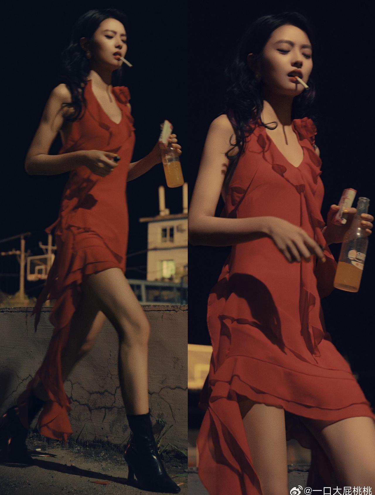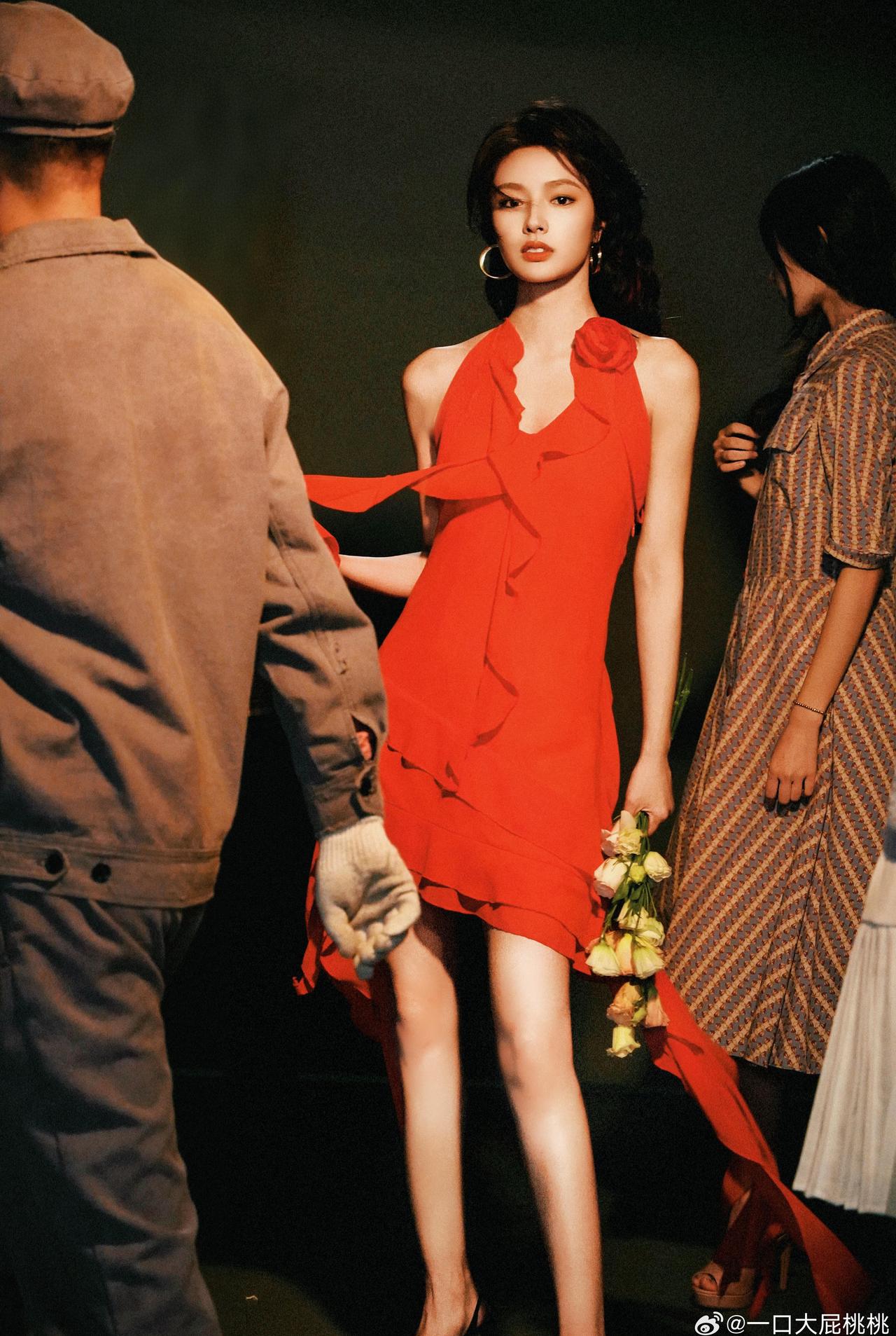 徐若晗岁月有情时里的红裙造型,很港风艳丽!