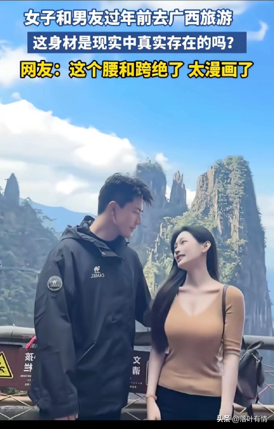 女孩和男友去广西桂林旅行, 遇到一处观景台, 她就想和自己的男友合影, 看到一位路人经过, 美女就赶紧让路人给他俩拍个照, 路人居然也没有拒绝, 就这样给两人拍了一张照片, 女孩的颜值,身材都很好, 他的男友长得也很高大帅气, 身高整整比他高了一个头, 这就是所谓的最萌身高差, 不过这段视频放出来, 网友都没有关注男友的颜值, 都表示女孩长得太好看, 还说她的腰和胯真的绝了, 明明他的男友长得非常帅, 后面的风景也非常的美丽, 为啥大家都盯着女孩看呢? 每人推荐一个旅行目的地 和对象去旅游 跟男朋友旅游