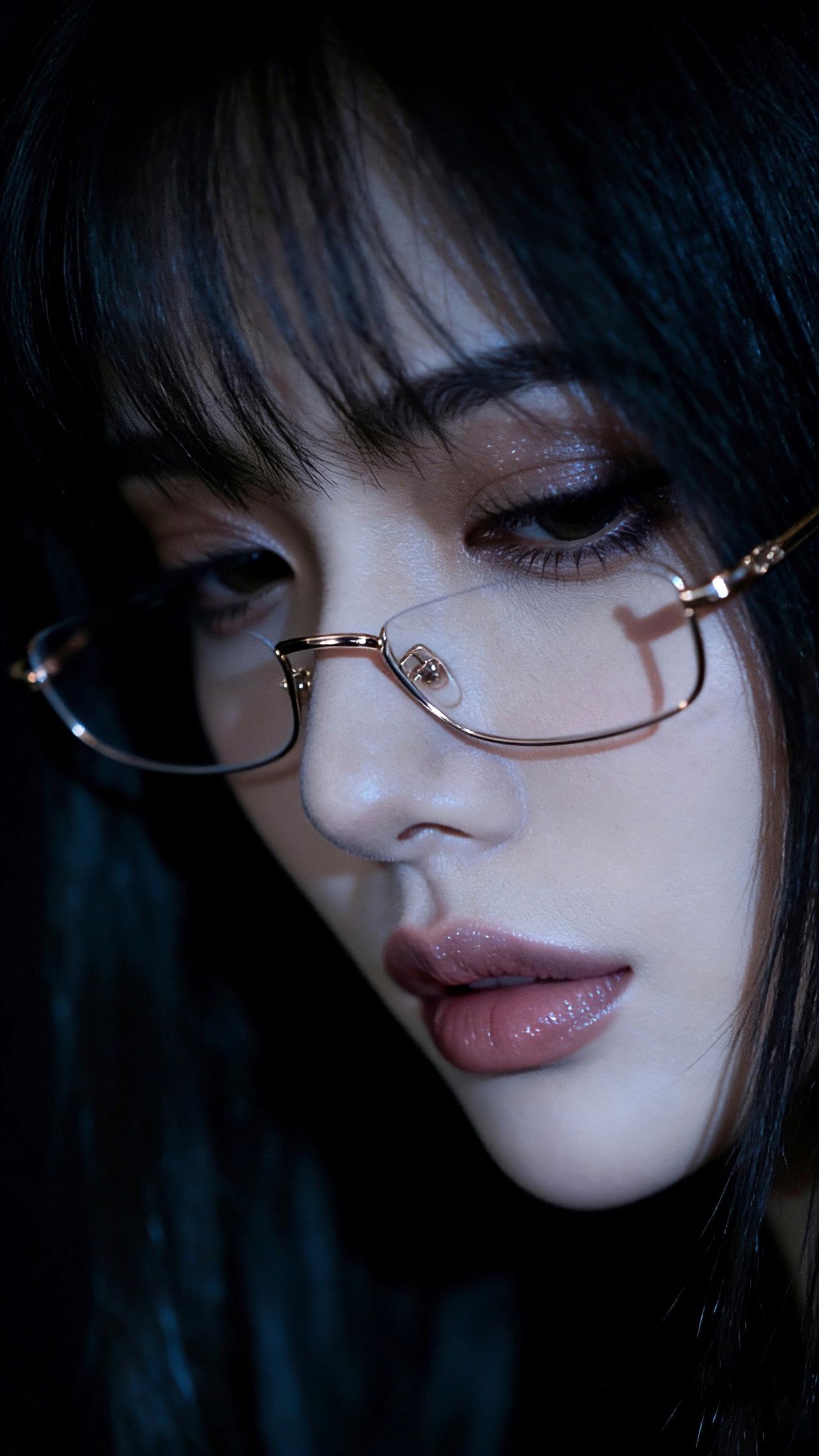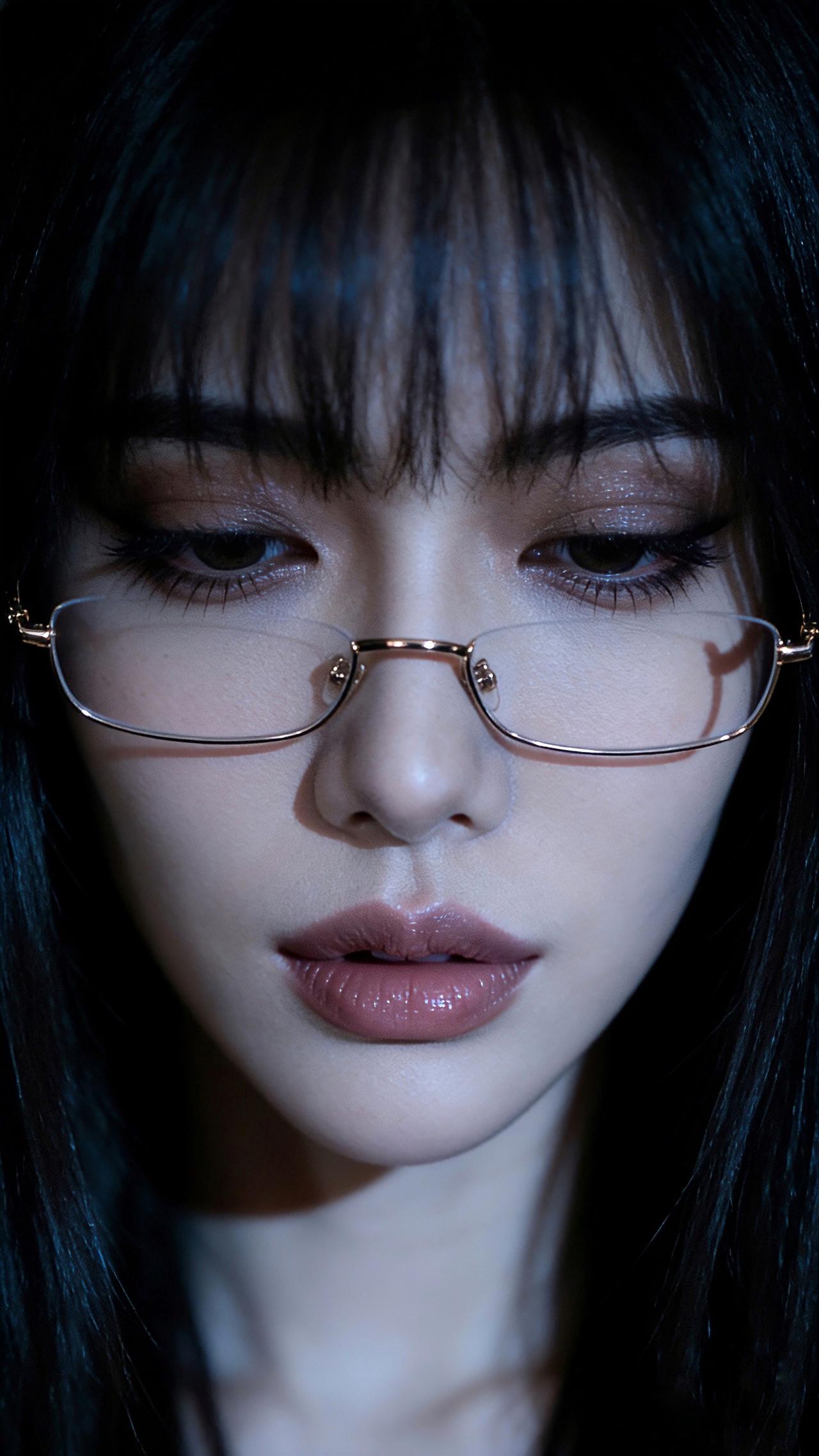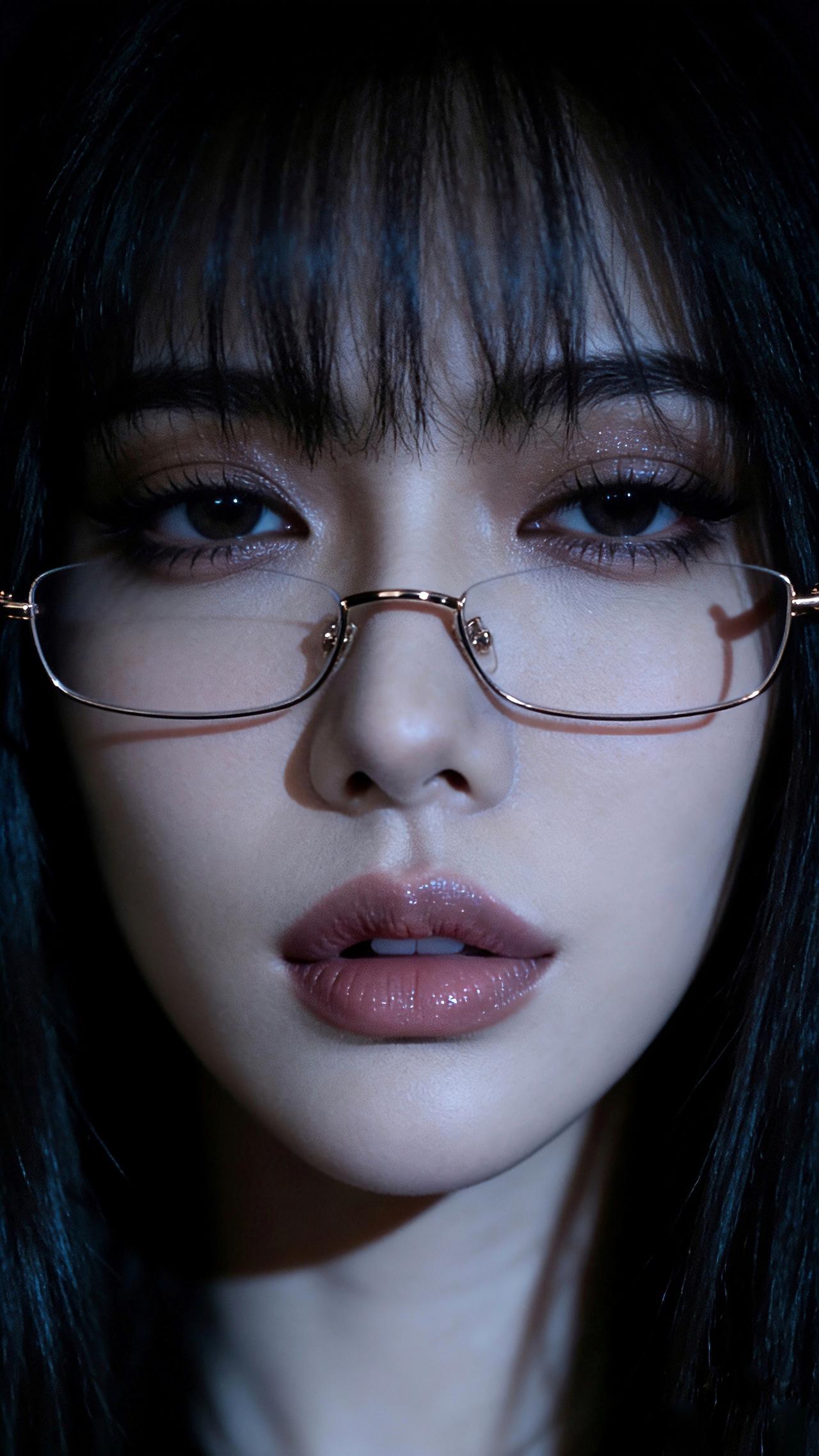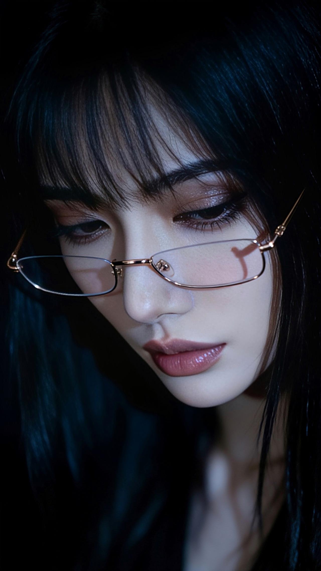 九帧同绘知性优雅仙。乌发如绸缎垂落泛柔光,金框眼镜添书卷气。睫若蝶翼眸藏星,粉唇莹润似樱绽。深色背景衬静谧,光影交错藏风情,一眼沦陷! 图片为AI辅助完成 ,请注意甄别!