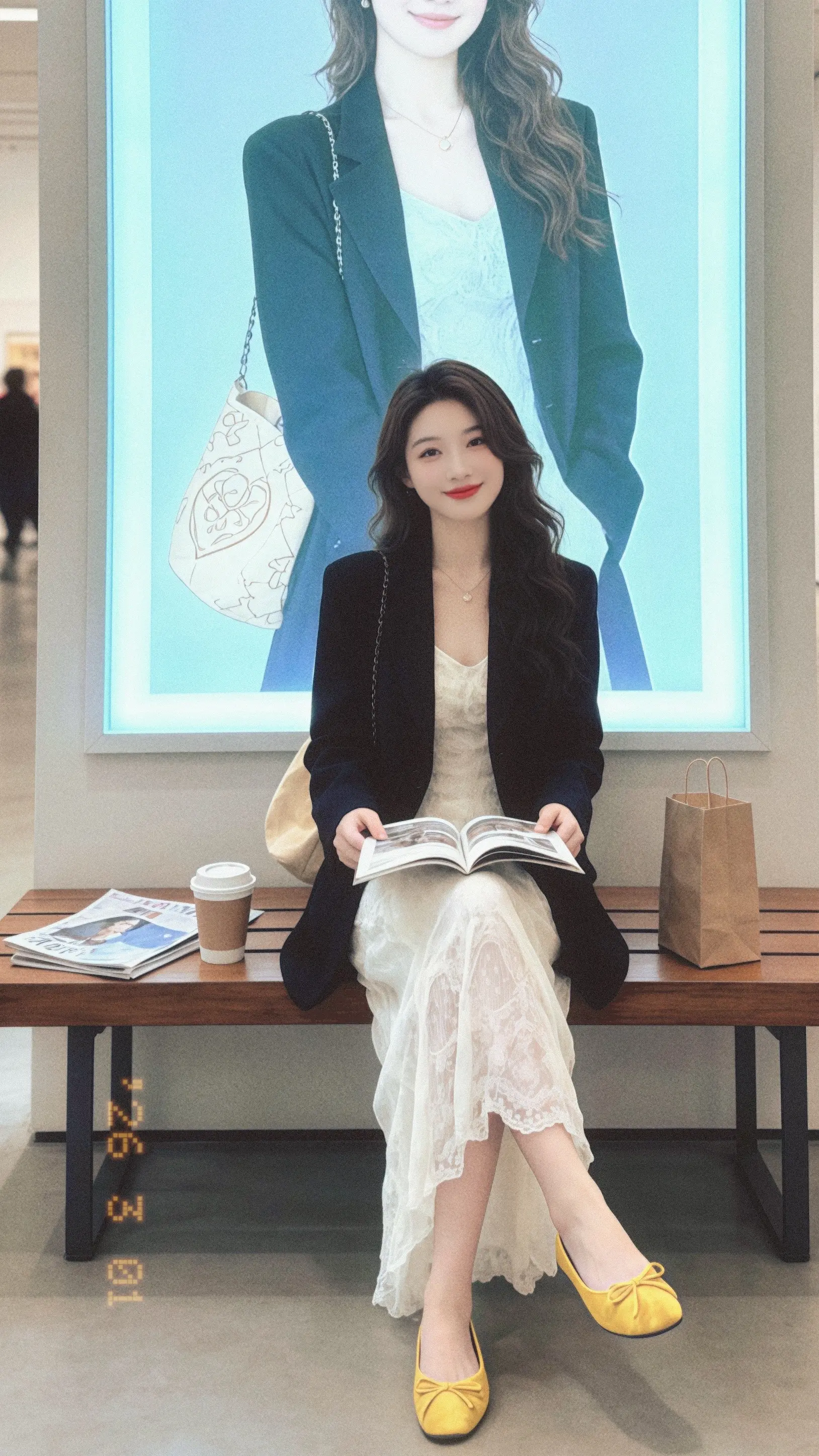 这套穿搭以黑色系为主,整体风格干练又不失温柔,细节丰富:•外套:黑色收腰双