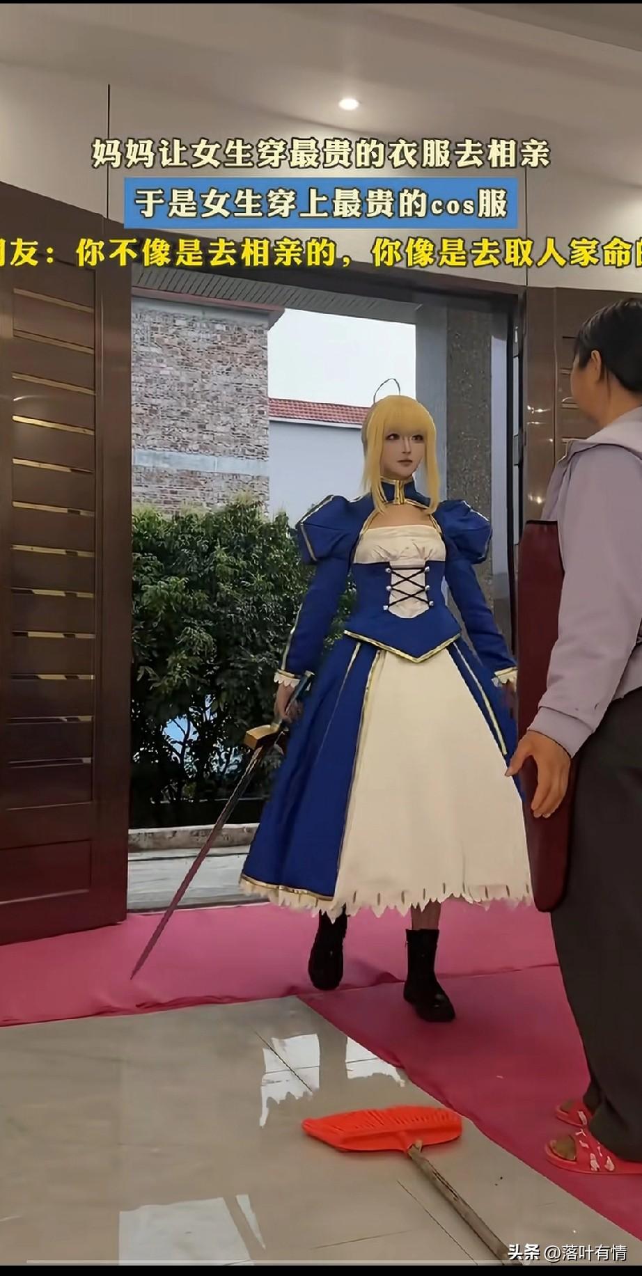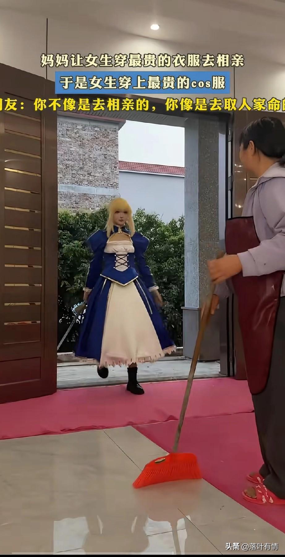 女孩过年回家却被妈妈催婚, 他的妈妈在收红包的时候, 让她穿最贵的衣服跟她一块去相亲, 她的母亲都帮她约好了, 还说那个小伙长得非常帅, 女孩听了之后点头应下了, 最后就去换了自己最隆重的服装, 进门的那一刻, 她的妈妈正在扫地, 看到女儿进来的一瞬间, 她老妈的脑袋嗡嗡的响, 手中的扫帚都掉地上, 原来他女儿去换的公众服装居然是cosplay,戴着金色的假发, 穿着动漫中的公主裙, 手中还拿着一把大剑, 漂亮是真漂亮, 不过感觉她不是去相亲, 而是去索命的! 这样的女孩挺有趣, 就是不知道和她相亲的男孩能不能扛得住,大家觉得喜欢cosplay的女孩怎么样? 催婚 年底催婚潮 统一催婚话术 家长催相亲 00后催婚