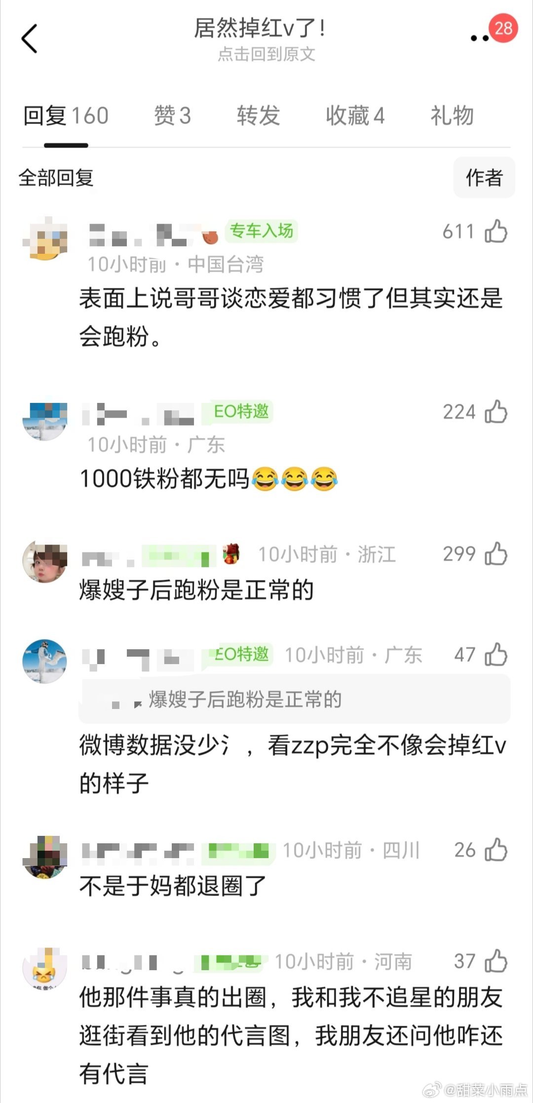 许凯都掉成橙 v 了,主要是昨天还营业过😂这是不够一千铁粉还是不够一千万阅读?前者不够说明跑粉严重,后者不够说明数据氵,总得认一个吧