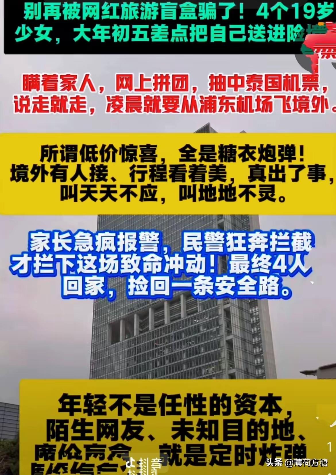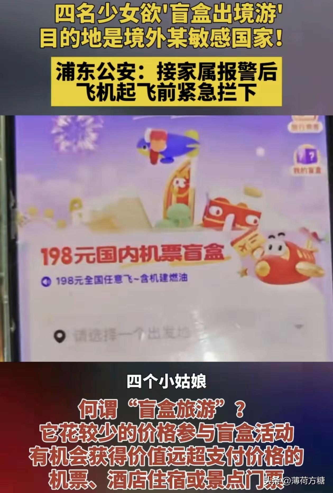 凌晨两点多,四个刚满18岁的小姑娘,差一点就背着包冲向了飞往泰国的航班!这场被称为“旅游盲盒”的事儿,当时差点就闹大了。这四个平时互不认识的女孩,是在网上聊熟的,花了几十块钱抽中了一张去泰国的机票,连家里人都没告诉,就急急忙忙收拾东西准备出发了。 浦东警方那边接到家长的报警后,前后只用了两分钟,就把她们住的酒店位置给锁定了。等民警赶到的时候,这几个姑娘正蹲在地上收拾行李呢。警察没直接批评她们,反而蹲下来慢慢问:“泰国哪些地方你知道是危险的?真要出事了,你知道该找谁帮忙吗?”就这几个问题,让原本懵懵懂懂的姑娘们一下子就反应过来了。 这可不是什么电影里的惊险桥段,是真真切切发生的一次“紧急救援”。看到新闻的网友都吓出一身冷汗:“国外跟咱们国内不一样,真要在外面出点事,那可就不是小事了!”这两年“盲盒旅游”在年轻人里特别火,不过话说回来,这种带着不确定性的旅行,平台可不会替你把安全这事儿扛起来。就拿去年来说吧,就有个女生去东南亚旅游,结果稀里糊涂就被拉进传销窝点了。 这次警方处理得确实挺聪明,没直接说教,而是用提问的方式让这些年轻人自己明白潜在的危险。旅行本来就不是一时冲动就能决定的事儿,安全这两个字,永远都得放在最前面。当爸妈的担心成这样,其实也不是没道理,毕竟谁也不想自己家孩子在外面玩得好好的,最后却成了新闻里的负面例子啊。 这件事给我们提了个醒:旅游的新鲜感确实挺吸引人,但要是一点准备都没有就去冒险,那跟赌博也没啥区别了。那你觉得,这种让人又爱又怕的“盲盒旅游”,到底应不应该被禁止呢? 景点盲盒 携程国际盲盒 全障碍盲盒旅行
