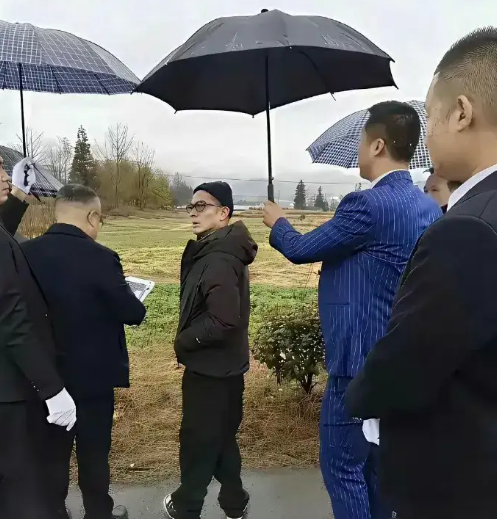 天王郭富城也有被土味穿搭拿捏的一天 这张照片里,他头戴黑色瓜皮帽,架着圆框眼镜,裹着一件深色连帽羽绒服,双手插兜站在乡间小路上,活像一位下乡考察的“老干部” 更绝的是,身边还有几位西装革履、戴着白手套的“随从”,有人撑伞、有人递文件,这阵仗直接把天王的气场拉成了“乡村企业家视察”的既视感 原本的帅气天王,瞬间变成了接地气的“郭主任”,这反差感,估计郭富城本人看到都想连夜把这张照片从互联网上抹掉吧