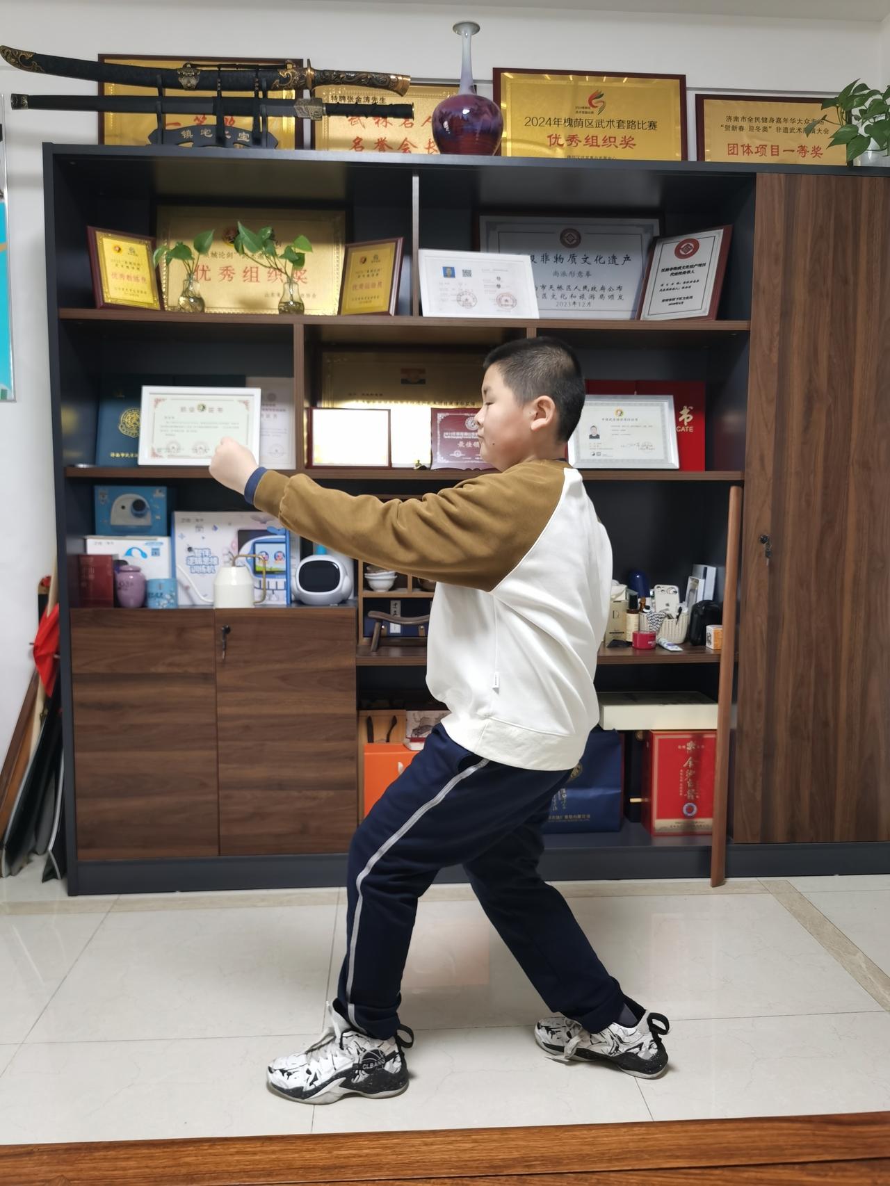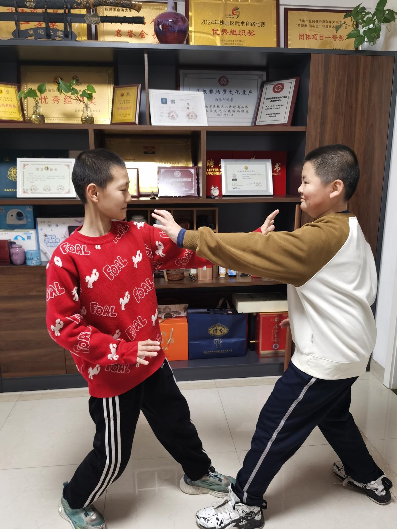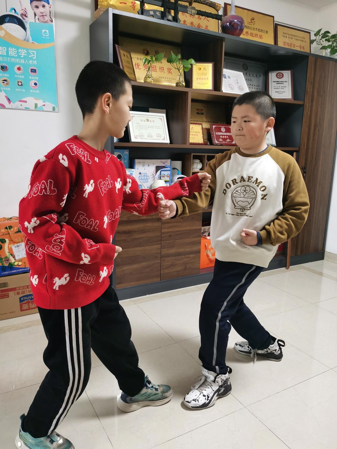 寒假最后一练。下一天一夜的雨雪,道路泥泞,家长带领孩子们克服困难来工作室练功。传授五行拳的生克对练技法,形意拳由单操练习转为实战技击用法学习,让孩子们增强的攻防意识,了解五行生克理论。形意拳发劲迅猛刚实,实战技击性强,只要刻苦学习定能掌握所学要领,将这一技艺放以异彩。
