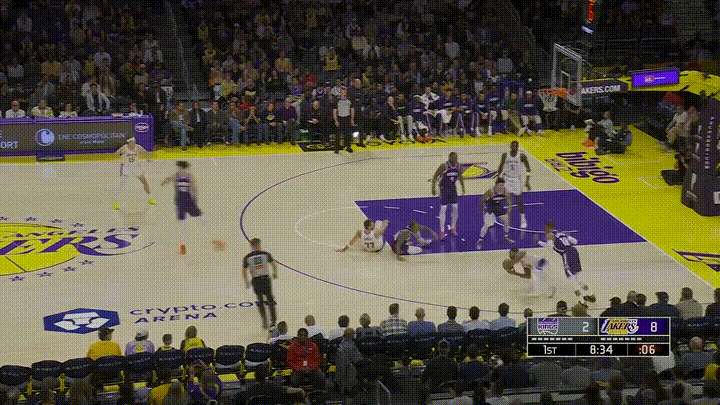 湖人超级巨星詹姆斯的表演时刻又来了!在今天湖人主场迎战弱旅国王的比赛中,当时比赛进行到了第一节的八分多钟,斯玛特在倒地抢断成功以后将球传给了快下的队友詹姆斯,詹姆斯随后将球传给里弗斯,最后詹姆斯接里弗斯的抛传完成了一记石破天惊的双手空接暴扣,帮助球队继续扩大了领先优势。 作为NBA历史上实战扣篮能力最强的球员之一,几乎每场比赛詹姆斯都会为现场球迷奉献这样精彩的表演时刻。