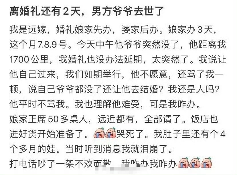 离婚礼还有2天,男方爷爷去世了