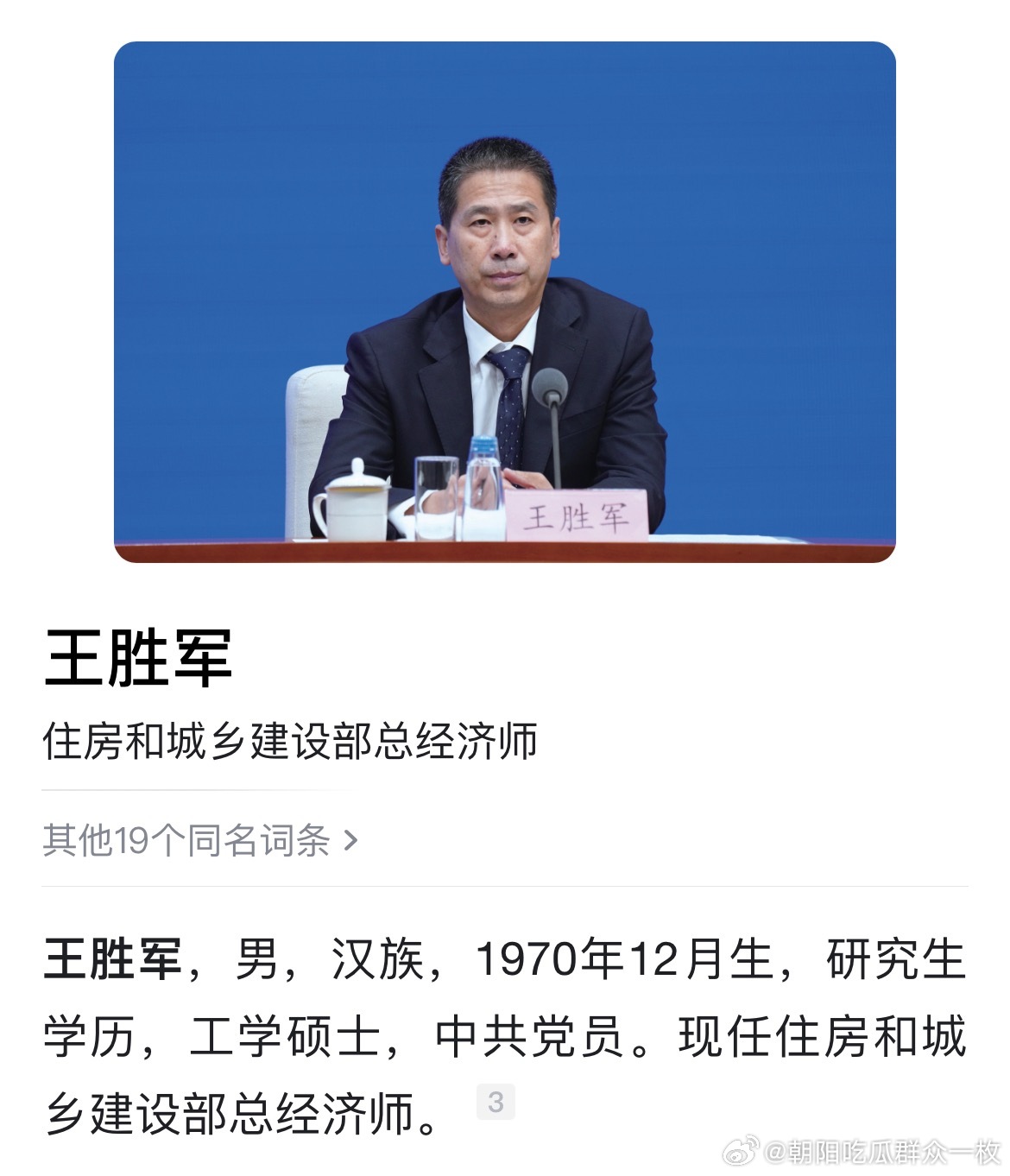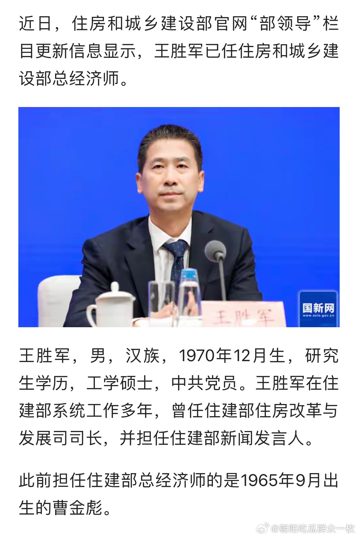 王胜军已任住房和城乡建设部总经济师。