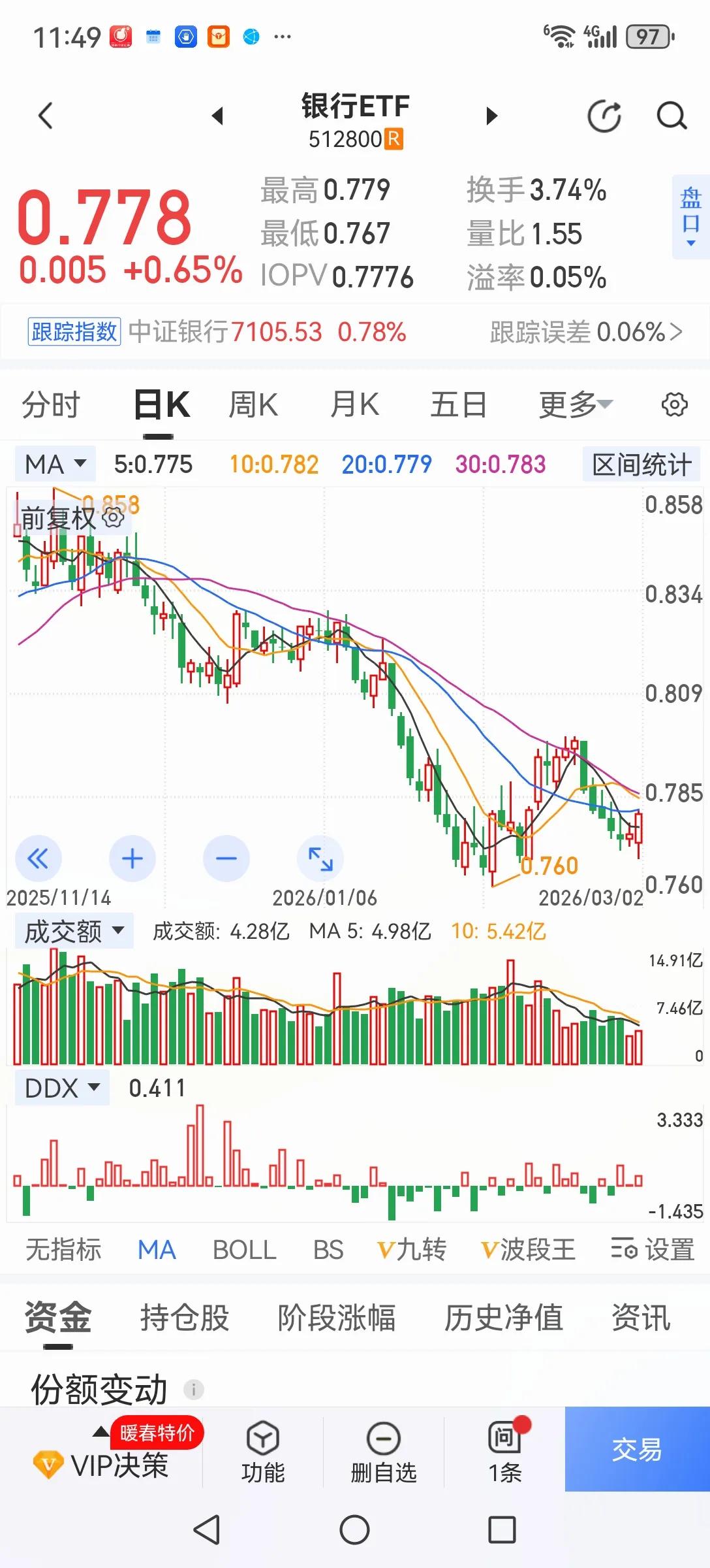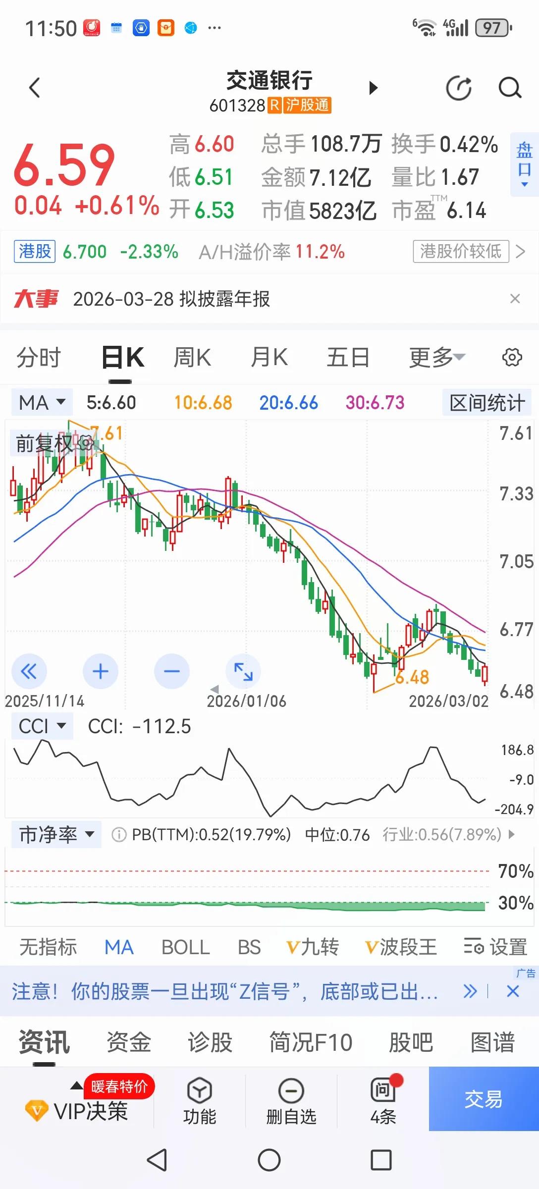 银行股上涨理所当然。今天银行股上涨了,一是护盘的需要,前期压盘,现在需要护盘;二是银行股经过充分调整,己到合理区间;三是银行股普遍有5%股息率,是长线资金进场的首选,攒股收息成为一种趋势。