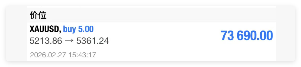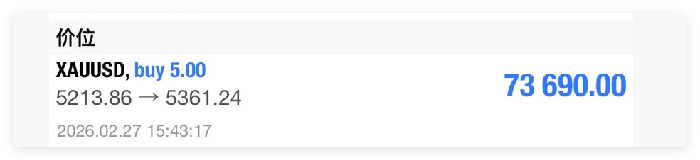 实力从不是空谈,而是跳动的蓝色数字,更是看得见摸得着的多单奇迹!自2月24日起布局黄金多单,5个交易日持续收割,2300点利润随时落袋!时间疾走,战绩昭然,每日策略精准落地、全程公开,无半分马后炮!深哥实盘摆在眼前,能掌握多少、收获多少,全看你的执行力。吾日三省,方知得失。🎯🎯🎯