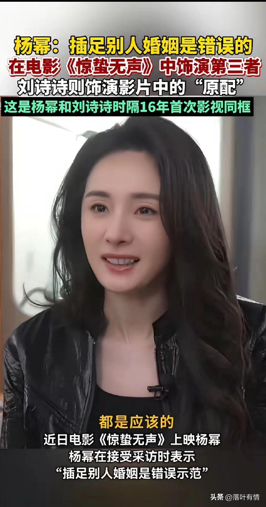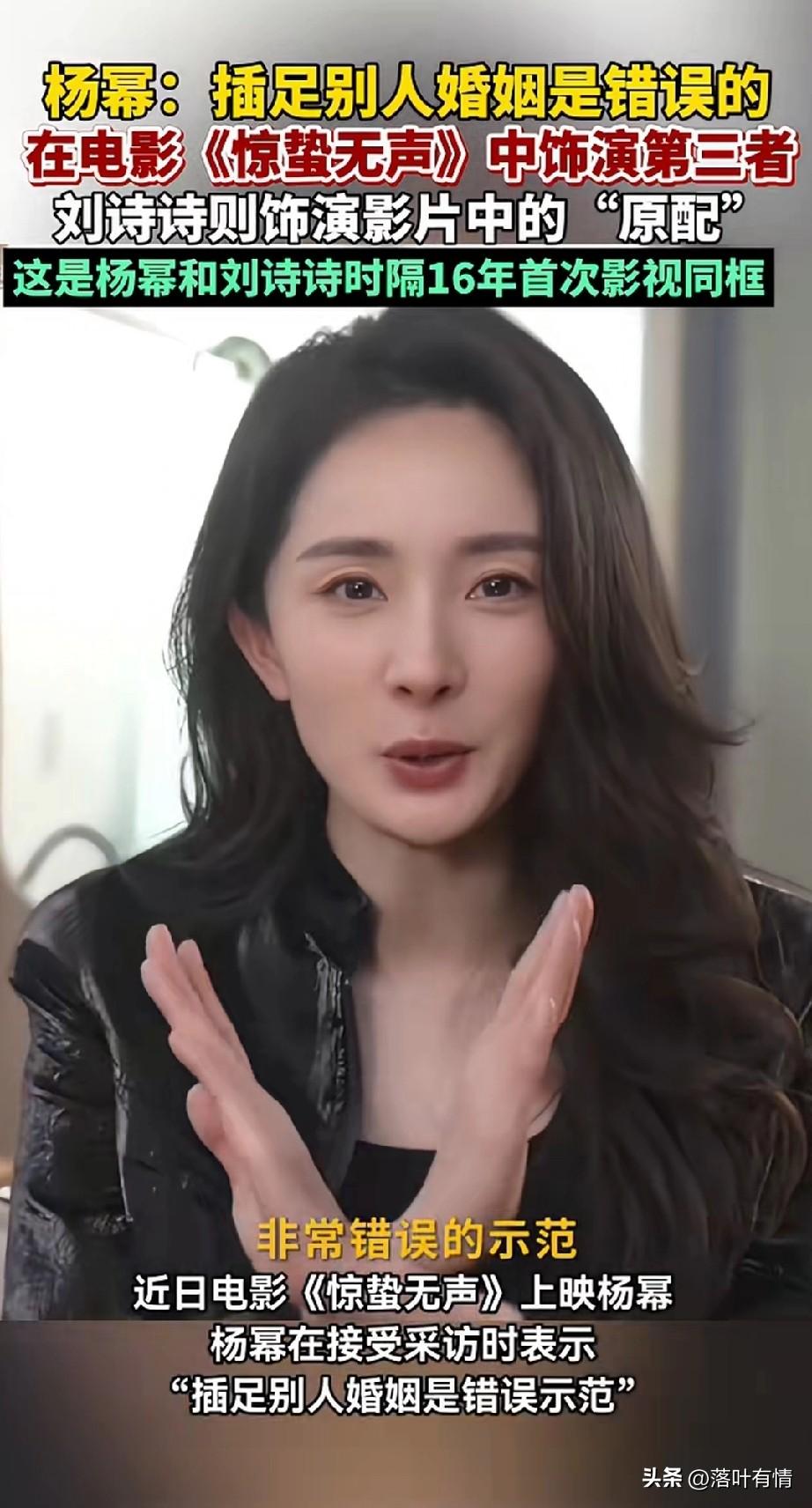 杨幂和刘诗诗时隔16年, 两人再次在电影中同框了, 之前大家都传言两个人不合, 她们一般相遇都不打招呼, 想必中间有些不可告人的秘密, 如今为了片酬也是冰释前嫌, 居然在一起拍电影了, 而且这部电影还是惊蛰无声, 也算是一部比较精彩的贺岁档电影了, 刘诗诗在里面饰演原配, 杨幂在里面饰演小三, 面对记者的采访, 她表示当小三是不对的, 涉足别人家庭也是不对的, 剧中的人物给大家是错误的示范, 可以说杨幂也算是正能量满满了, 大家对于杨幂在电影上的表现怎么看? 杨幂 杨幂明星照 杨幂 生图 刘诗诗图 杨幂体面感