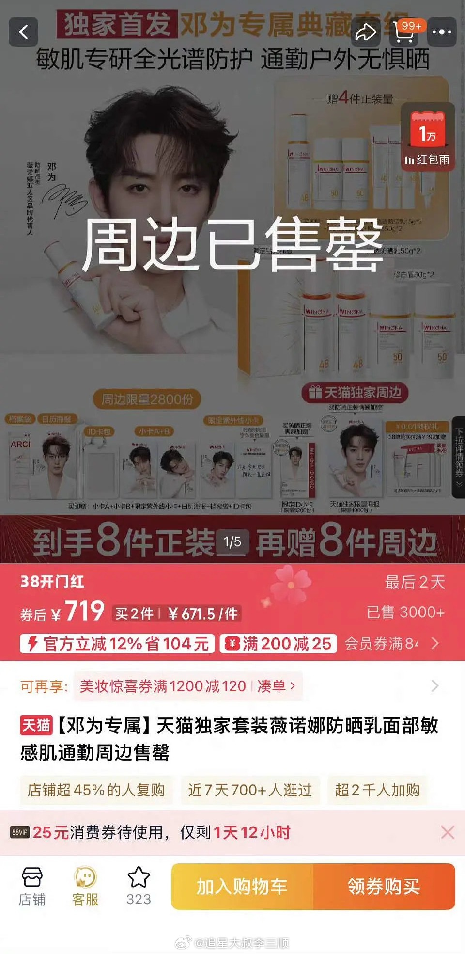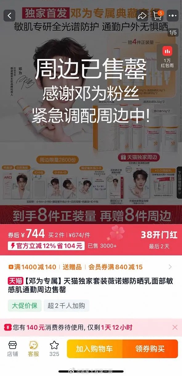 邓为官宣薇诺娜代言后周边已售罄,带货能力🔥