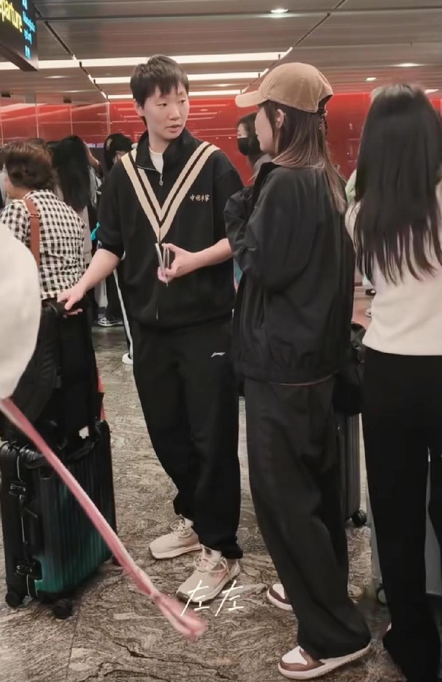 新加坡机场,与陈幸同一起排队聊天等待安检的王曼昱! 同同和曼昱还是太熟了!平时看着曼昱身边有徐奕陈熠一起陪着吃饭和逛街。但是只要曼昱和陈幸同站在一起,两人之间总有一种“老夫老妻”式默契!毕竟是从小一起的队友,也是乒超俱乐部队友,互相都贯穿出现在彼此的职业生涯,实在太熟悉了! 钱天一离开国乒后,同同今年又经历恋爱分手。现在身边的熟人真的只有王曼昱了! 曼昱也是处处惦记着同同,不让她一个人。