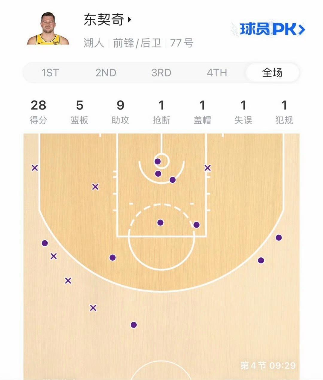 东契奇就是这个进攻水平的球员,打弱队只需略微出手,就将第四节打成了垃圾时间,东契奇三节打卡下班。 他的小老乡德约科维奇今天过来看他打球,詹姆斯看到他非常兴奋,以至于做的庆祝动作幅度太大了。 公子上来了,比赛基本结束。