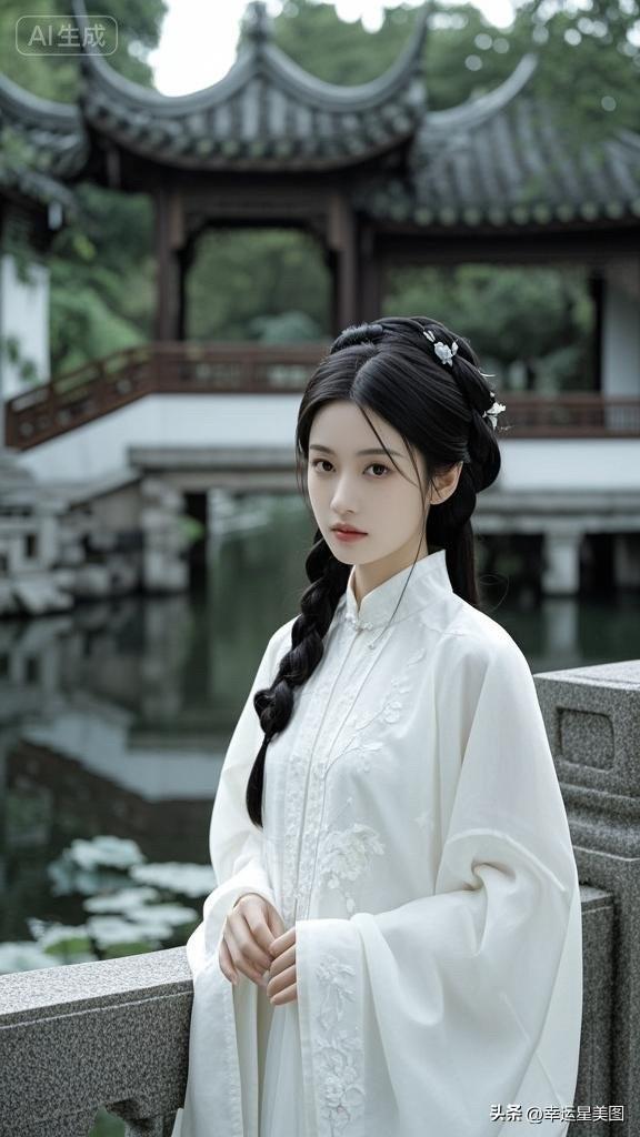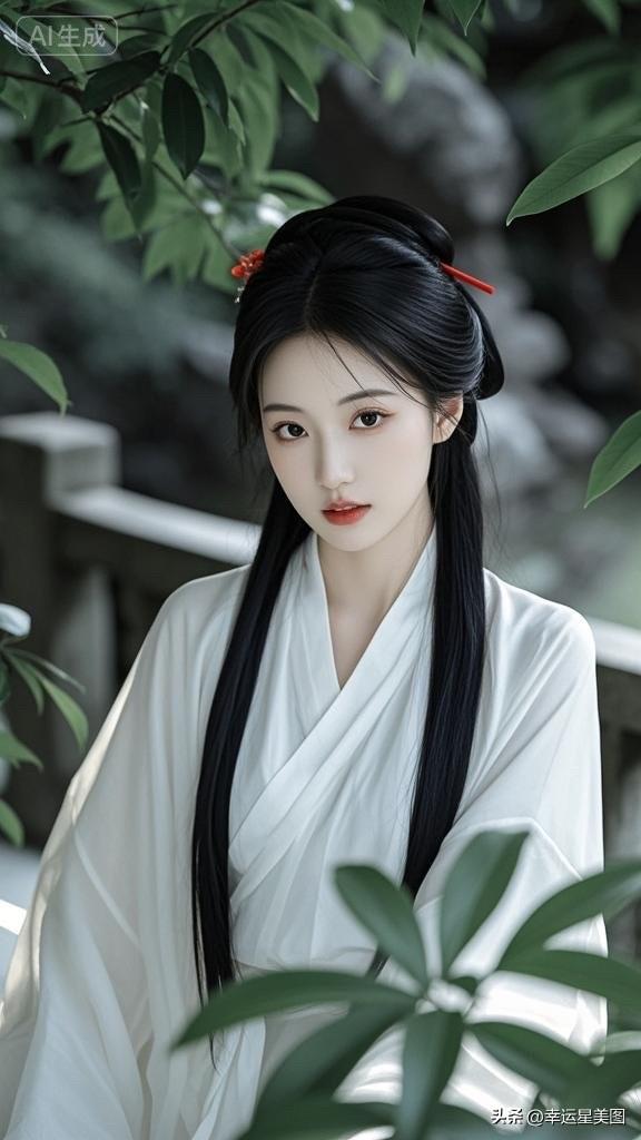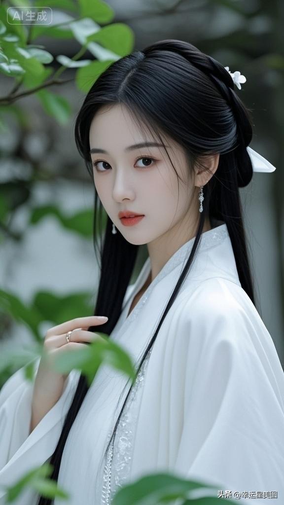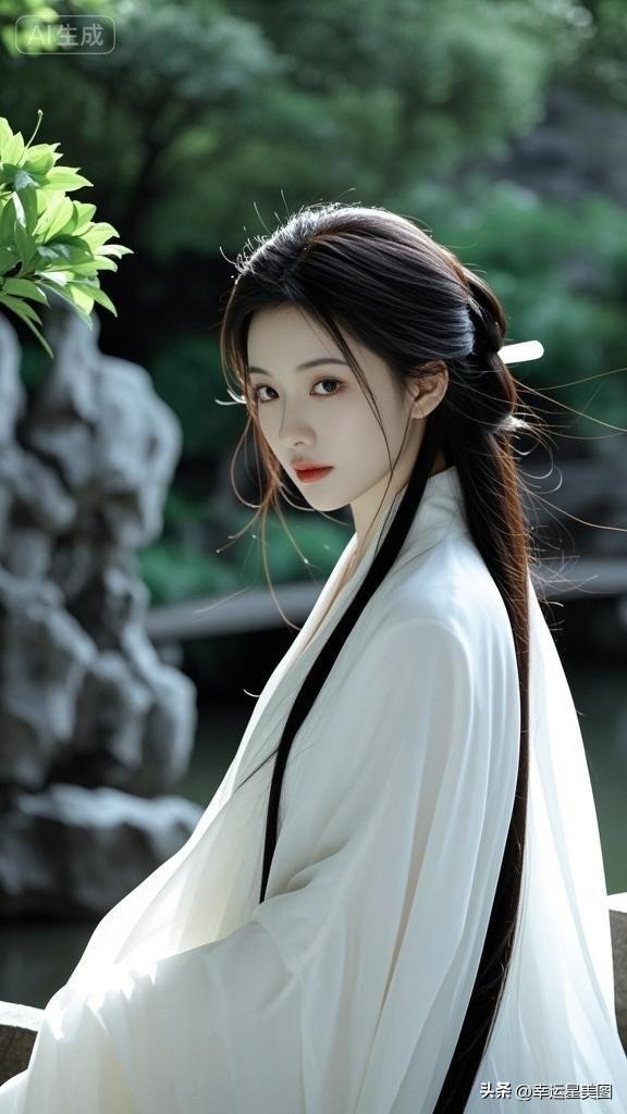 古风少女,黑发如瀑,白衣飘飘,宛如画中仙子。