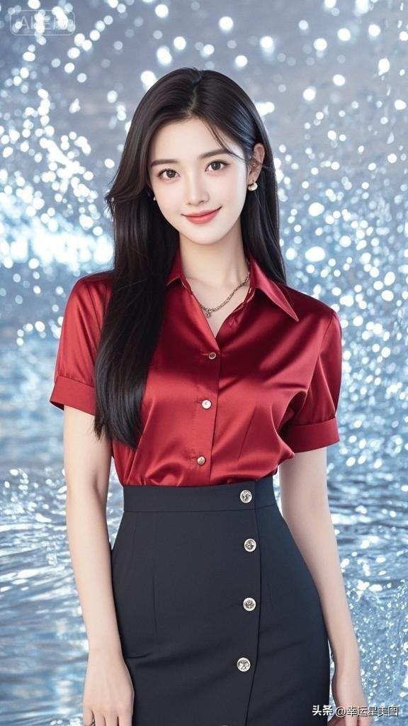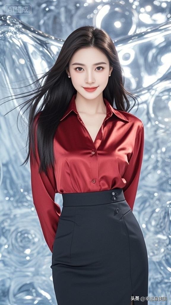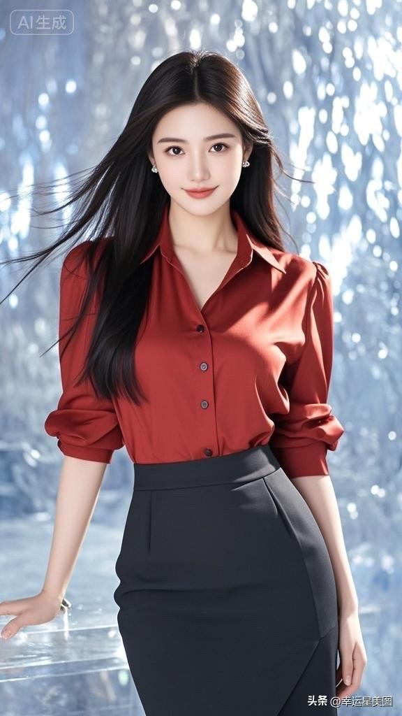 甜美笑容,黑发飘飘,元气满满的一天!😊✨