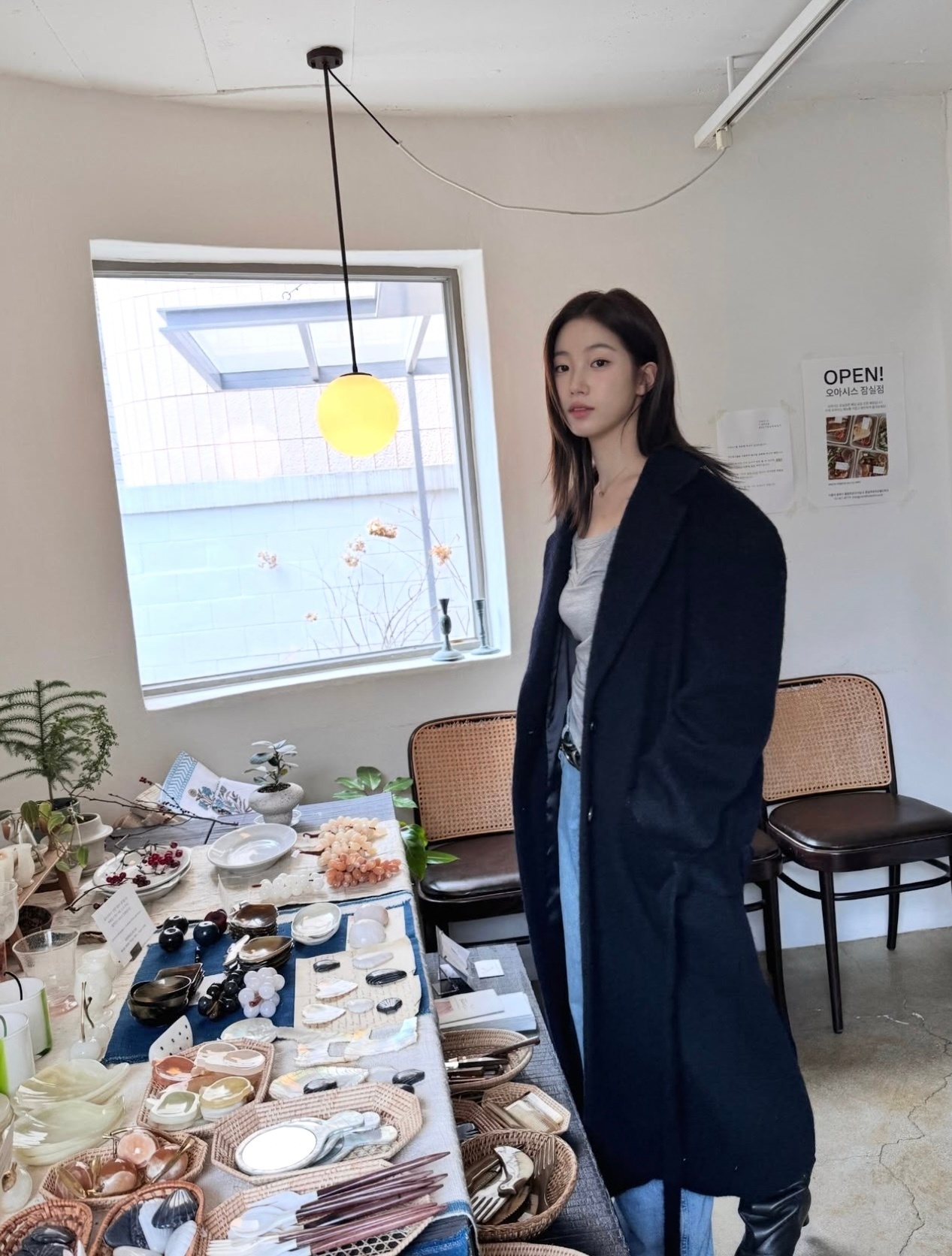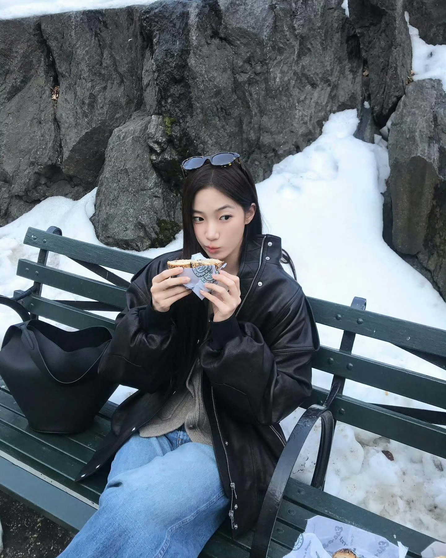 刘亦菲这条裤子挺养生,毕竟降温了肚脐眼必须护住啊